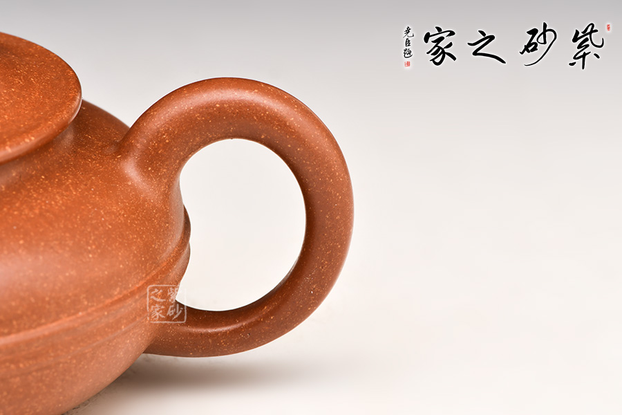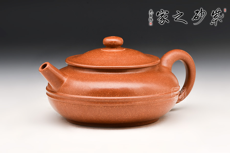 “扁腹”之扁乃是“扁圓”,既非扁平,也非扁方,紫砂之氣勢以飽滿為重,故扁腹造型壺身之弧度處理極難,多一分顯蠢,少一分則顯弱。