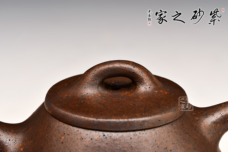 此石瓢壺繼承了傳統(tǒng)石瓢壺的精粹,整個壺身呈“金字塔”形,豐潤飽滿,由于重心下垂使用很穩(wěn)當,更具有極大的觀賞性,壺嘴短小有力,為直筒形,出水更有力量,壺鈕采用常見的拱橋造型,使整款壺在簡單中多了一份活力,壺蓋與壺身嚴絲密縫使此壺具有極高的實用性。