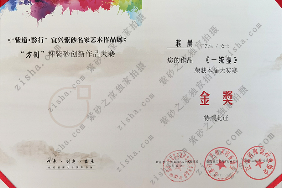 一統(tǒng)壺,榮獲紫砂創(chuàng)新作品大賽金獎。