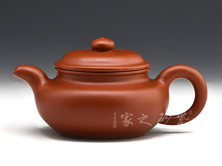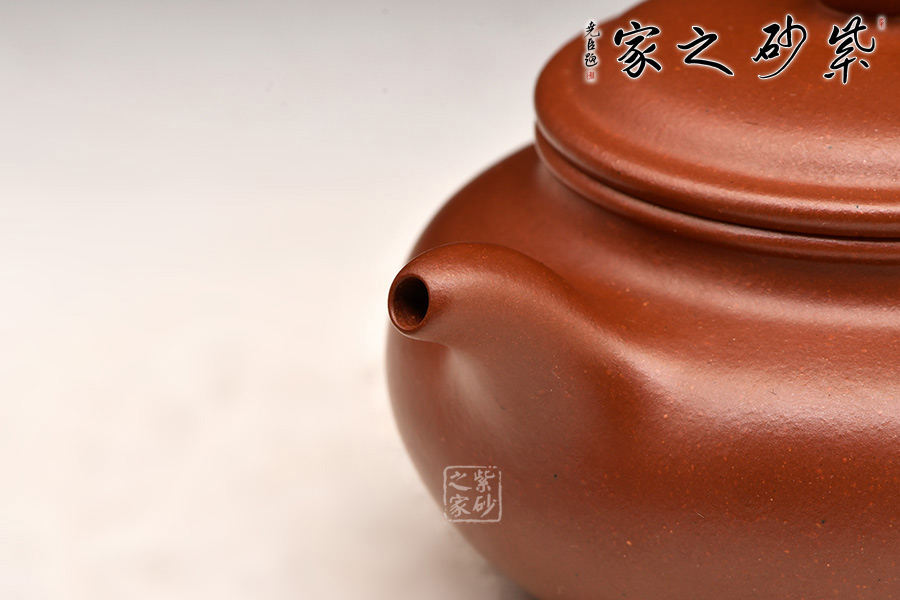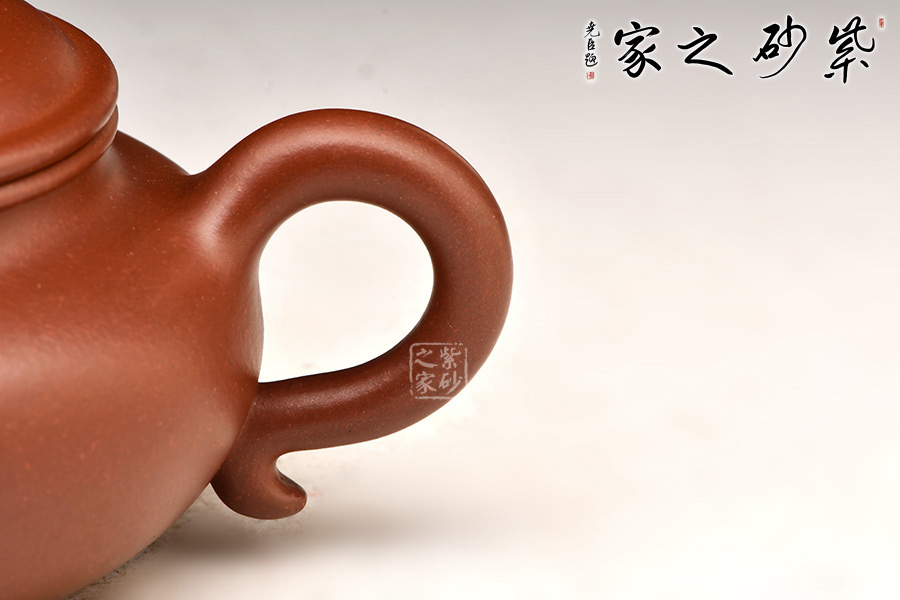 扁圓壺體,圓融飽滿(mǎn),精實(shí)有神,耳形鋬向下伸展成一垂珠,壺流根部線條與壺體自然宛轉(zhuǎn),扁圓壺蓋以子母線相合,圓潤(rùn)和諧,行云流水的線條之美呈現(xiàn)出柔而不弱的爽利感,靈動(dòng)中不失其韻味,厚實(shí)亦有其生機(jī)。