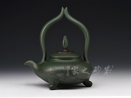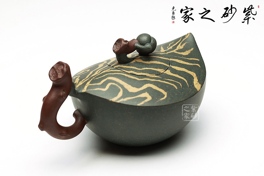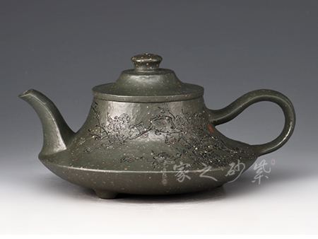 簡介:綠泥,玩者暱稱“綠豆砂泥”,古云“豆碧色”,泥色酷似綠豆皮,澹草綠。帶本山綠泥細(xì)黃砂,清麗出眾、雅俗共賞。所制壺品質(zhì)感樸拙,砂質(zhì)細(xì)膩而富有顆粒美感。壺品色澤米黃泛青,泡養(yǎng)后逐步轉(zhuǎn)為溫潤的亮色,包漿感好而易于泡養(yǎng),發(fā)幽然青光。產(chǎn)于黃龍山礦脈,是紫砂泥中的夾脂,故有“泥中泥”之稱。產(chǎn)量不多,泥質(zhì)較嫩,耐火力也比紫泥為低。原礦色澤為青灰泛綠,成片巖狀或粉末狀,以手拿之即會沾染上原礦粉末顏色。也常作為胎身外面的粉料或涂料,使紫砂陶器皿的顏色更為多彩。