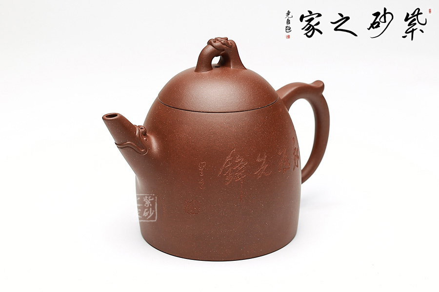秦龍壺是正高級工藝美術(shù)師張紅華老師在經(jīng)典紫砂壺型—秦權(quán)壺的基礎(chǔ)上,創(chuàng)新改制而來。