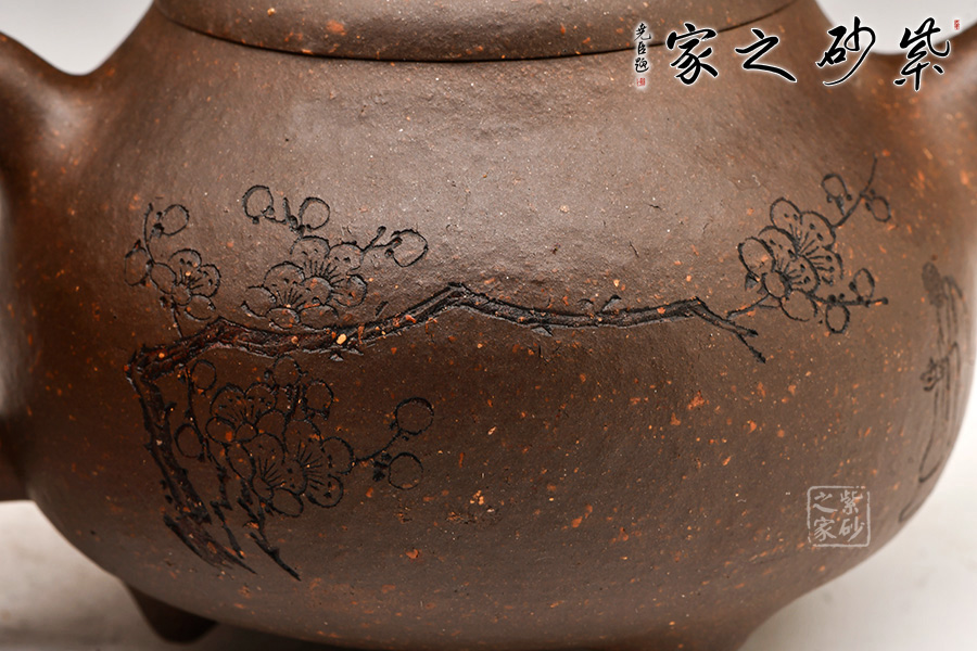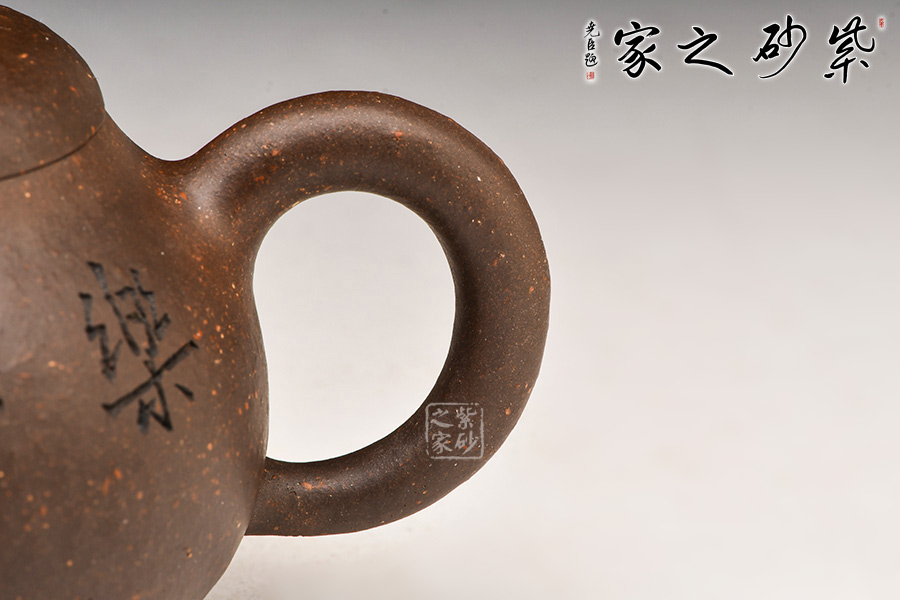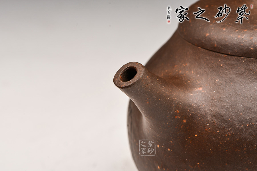 整壺豐滿、圓潤;線條挺括、流暢。壺身形體飽滿、渾圓如珠;壺嘴、壺把、壺鈕與壺身搭配協(xié)調(diào)、比例勻稱,壺嘴出水有力,壺把力度感強,壺蓋設(shè)計豐腴,口蓋嚴密;各部銜接不見痕跡、光滑自然、渾然一體,流暢的線條強化了律動的視覺效果。