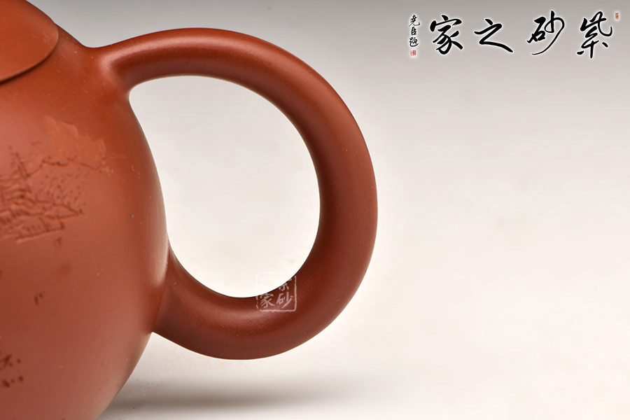 壺流與把和諧對稱。壺把上小下大,上薄下厚,自然流暢。