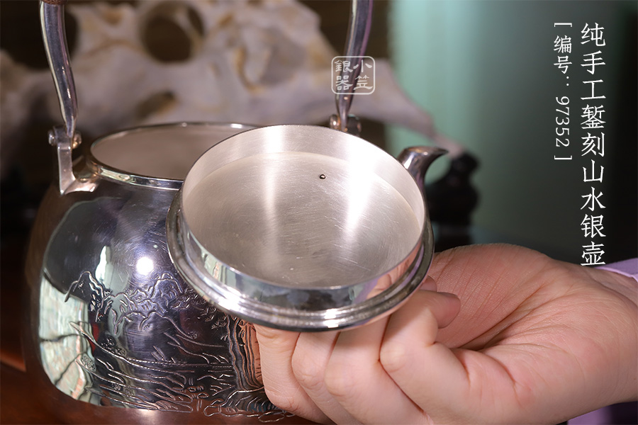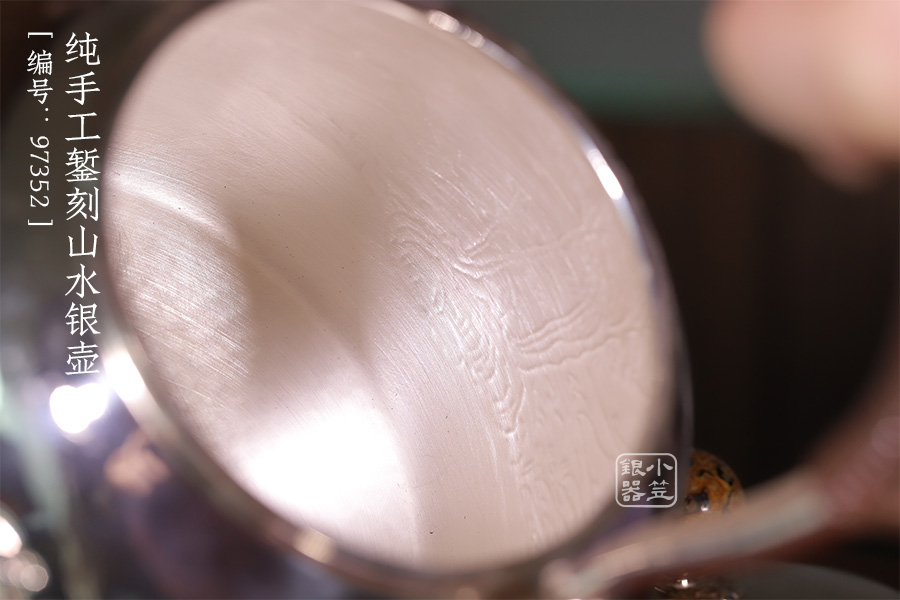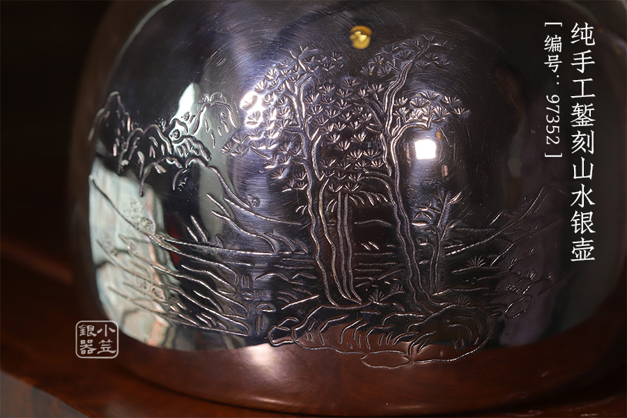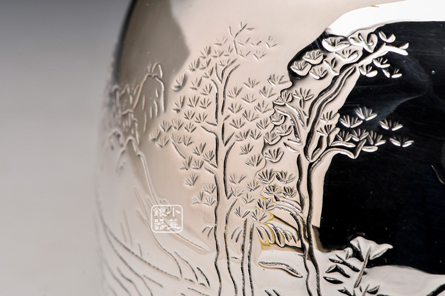 純手工鏨刻地山水,鏡面拋光,材質(zhì):足銀999