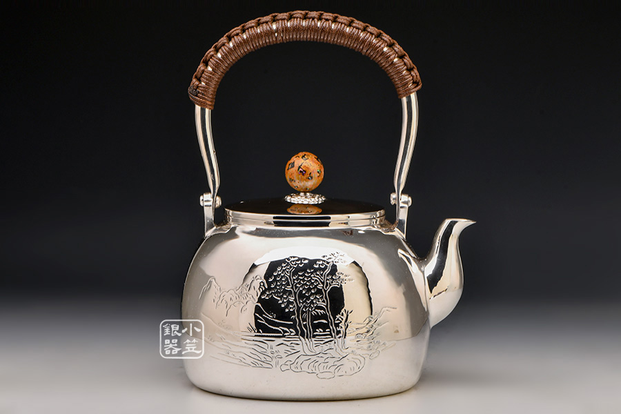 純手工鏨刻山水銀壺