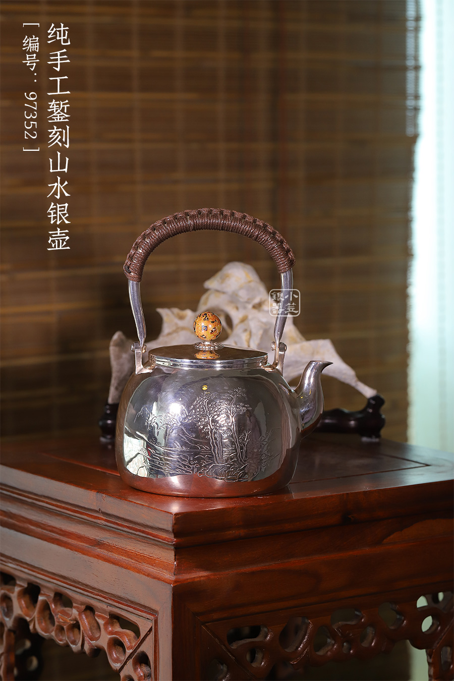 純手工鏨刻山水銀壺 [ 編號:97352 ]