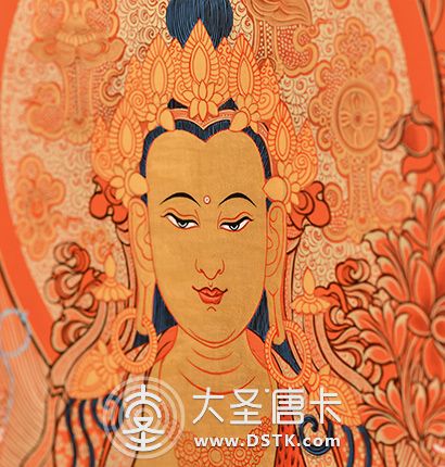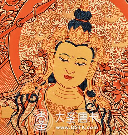 | 唐卡“師傅”開臉,筆路穩重流暢。體現完美天人相,可見佛菩薩慈眉善目,賦予唐卡畫像生的靈氣。 | 細節決定品質,點睛之筆不到位影響整體美觀,五官比例不協調,面目呆板,缺乏靈氣。 |
