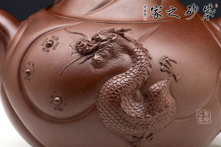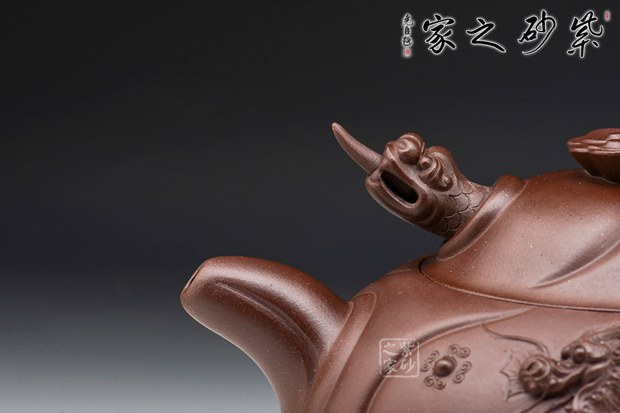 該壺設(shè)計巧思,造型華美大方,刻畫精細而不繁瑣,塊面清晰簡潔,線條流暢明快,沉靜中透出活潑,有祥瑞之氣溢出,令人嘆為觀止。