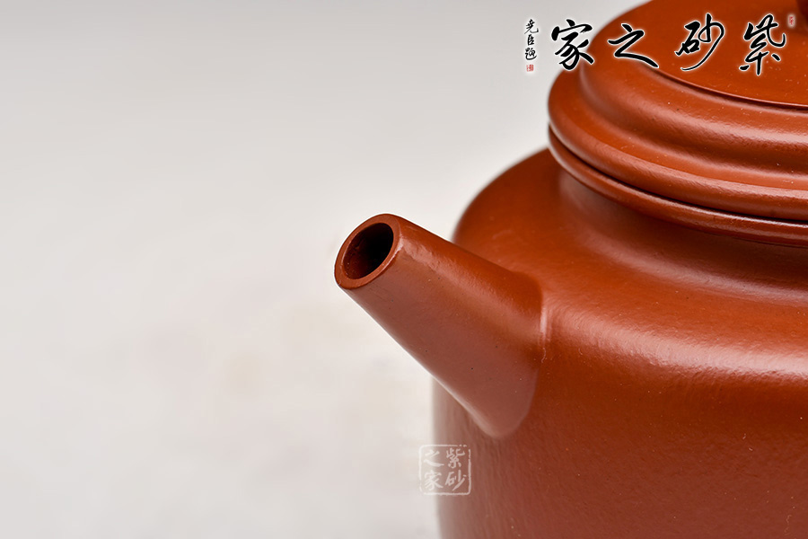 壺身挺括,壺蓋又比較高聳,更添了一番清瘦高古之美。明接直流嘴修長(zhǎng)昂揚(yáng),出水迅猛有力;端把方圓結(jié)合,端握起來(lái)舒適有力;傳統(tǒng)壓蓋嚴(yán)絲合縫,氣密性良好,扁柱鈕與壺身造型相稱。
