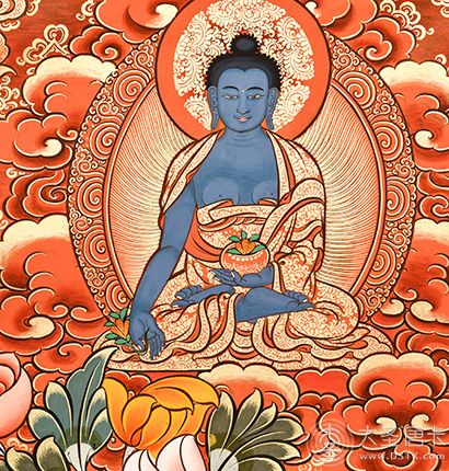 產地:熱貢 工藝:彩唐 創作年份:2021 題材:藥師佛 繪制時間:6月 尺寸:*70*100cm 裝裱:無裱 材質:織面 使用場地:書房