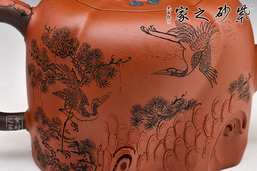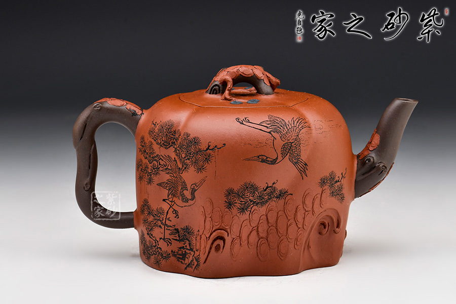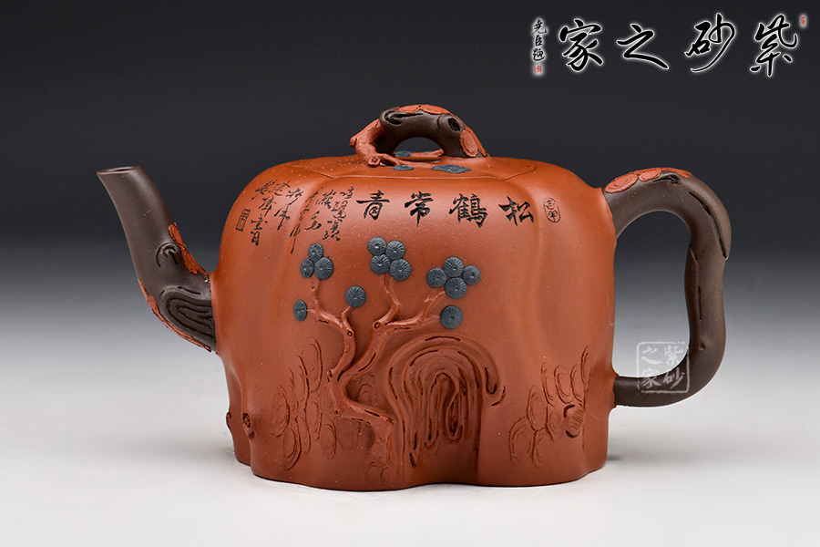 自古以來,松、鶴都是美好、長壽的象征。“松鶴常青”紫砂壺中將二者巧妙融入,成為精美的花器精品,極具賞藏價值!