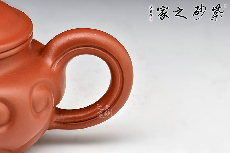 該壺骨肉勻亭,壺形飽滿,線條規(guī)整,品蓋極為嚴(yán)整。如意拱橋式壺鈕,同壺身相映成趣,有效的抬高壺體重心,給人更扎實(shí)穩(wěn)重之感,并恰當(dāng)?shù)谋憩F(xiàn)了紫砂的質(zhì)感,真有如詩云:弘揚(yáng)經(jīng)典造仿古,事事如意見玉壺。
