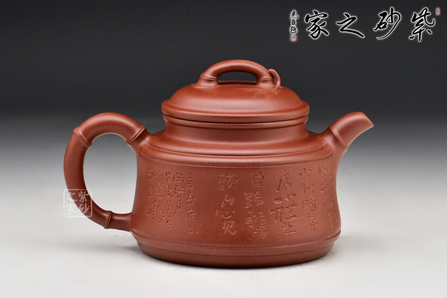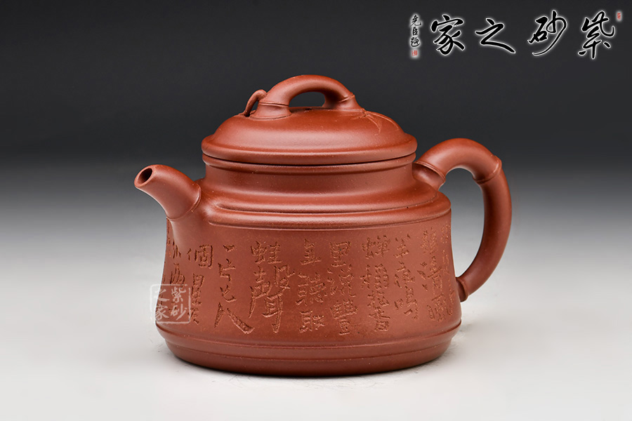 稀有泥料棗紅泥制作的竹鼎壺,將圓器和花塑器特征融為一體。壺身圓滑,下大上小。高頸,字母線壓蓋設(shè)計(jì)。拱形壓蓋,竹枝橋形鈕。嘴、把也為竹枝狀,彎曲有致,