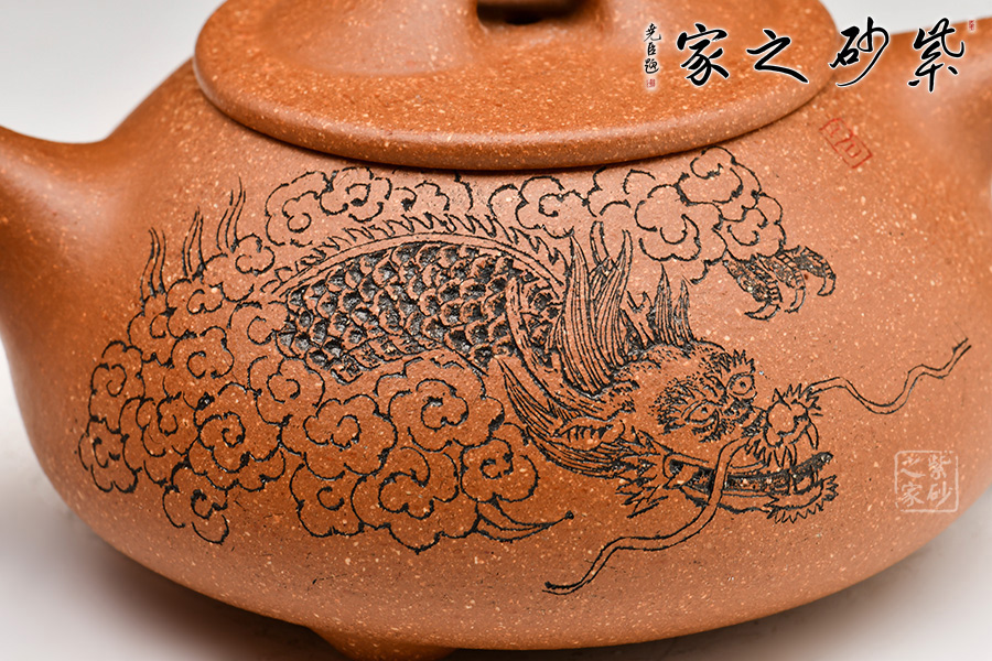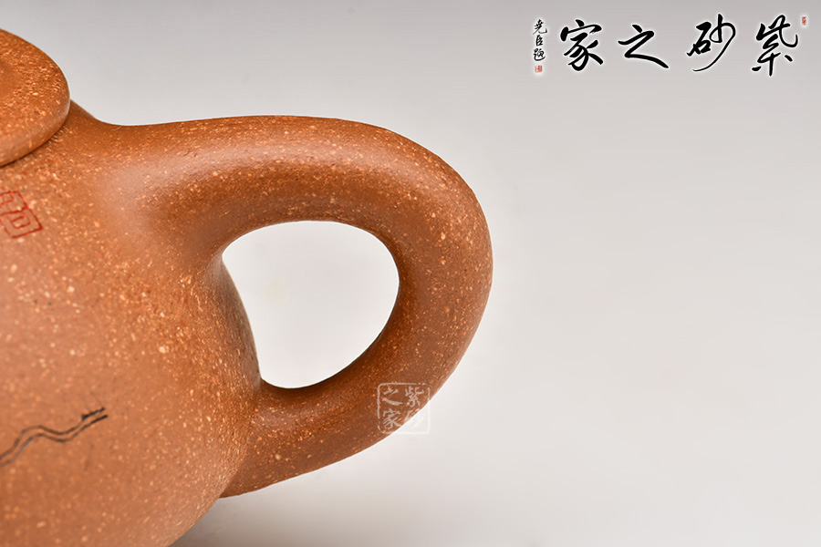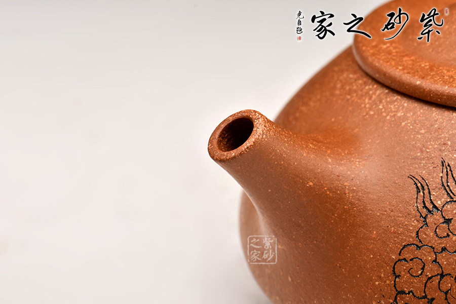 泥性:原礦因含緞泥、紅泥、紫泥等諸多共生礦,陶之后,于深沉之“橙紅色”底上,滿佈五彩斑斕的粗細(xì)、深淺之紅、黃星斑點(diǎn)。