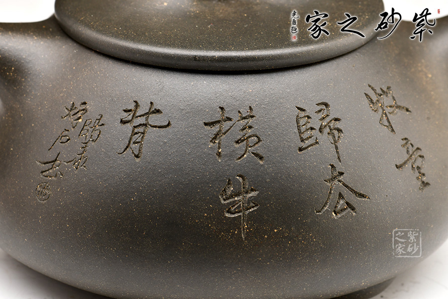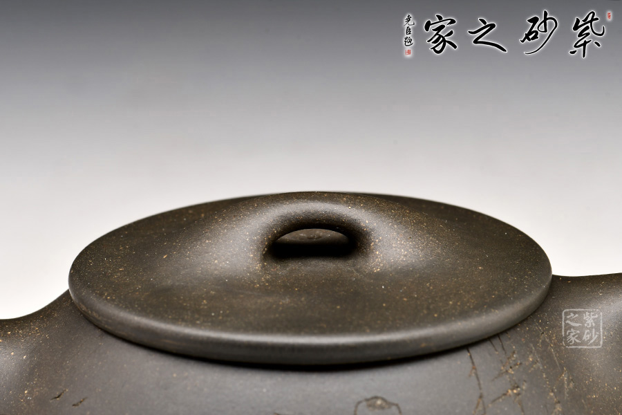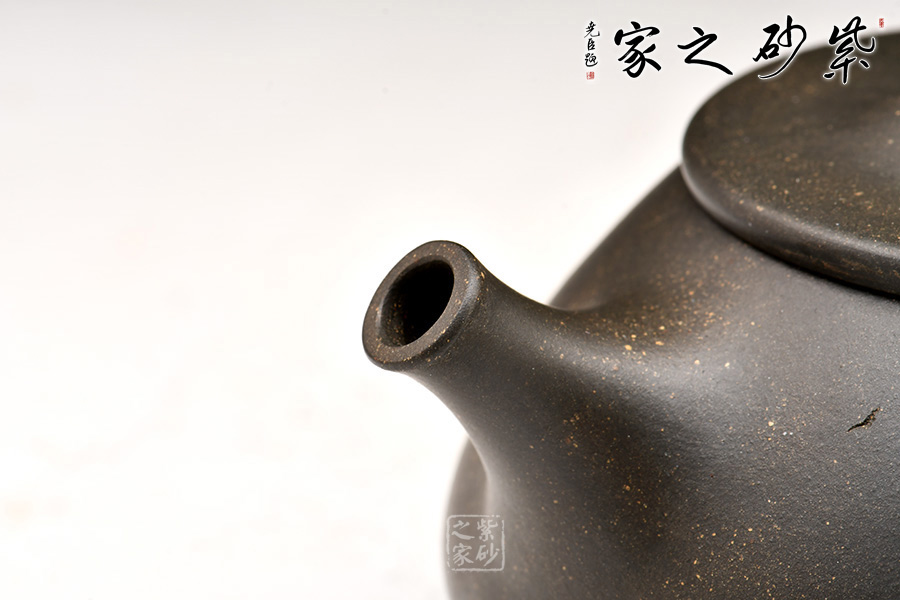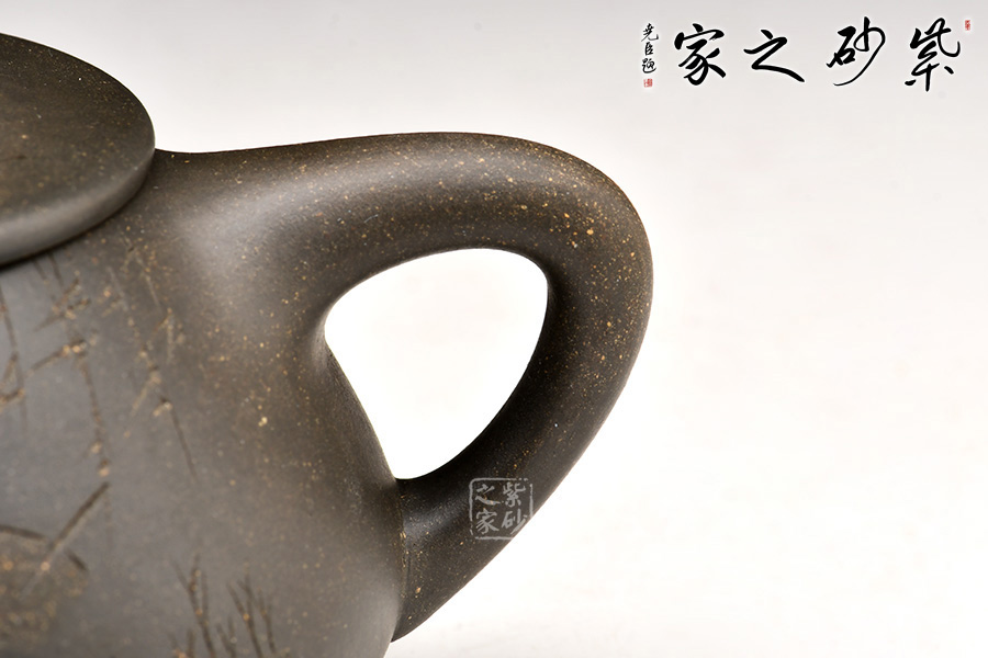 天青泥制作,壺身輪廓分明,挺拔中見端莊,瀟灑中見穩(wěn)重,風(fēng)骨恒而秀韻足。整器神韻十足,完美詮釋了智欲其圓、行欲其方,體現(xiàn)出剛?cè)嵯酀娘L(fēng)采!