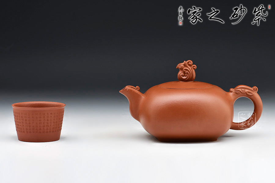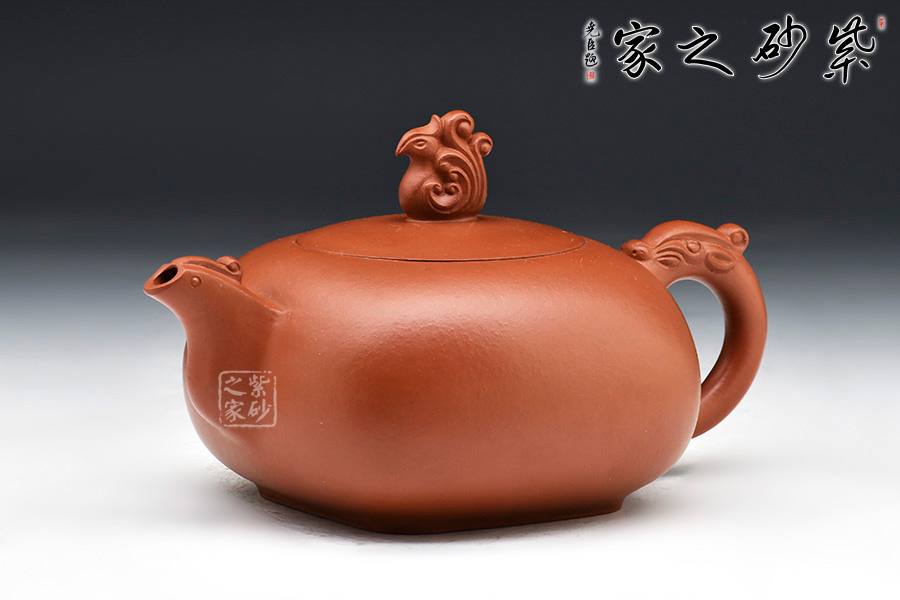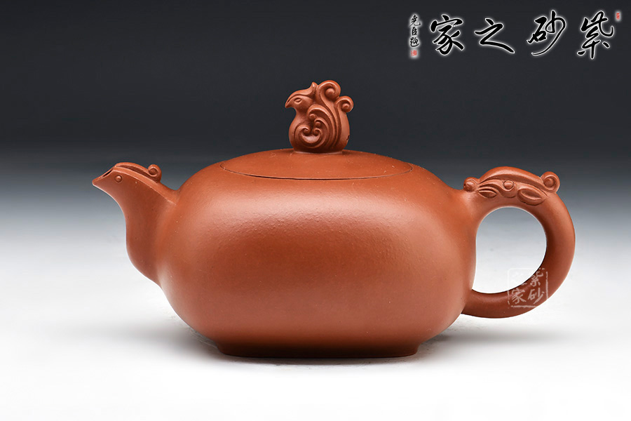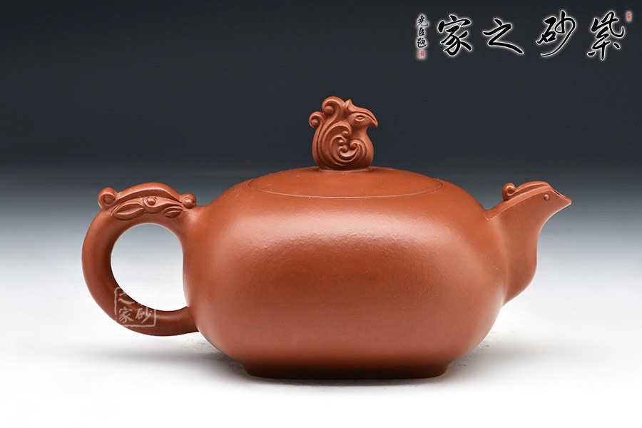 原礦紅泥制作的鳳吟紫砂壺,色澤紅艷,艷而不媚,與充滿瑞氣的神鳥“鳳凰”十分匹配,襯得作品喜意十足。
