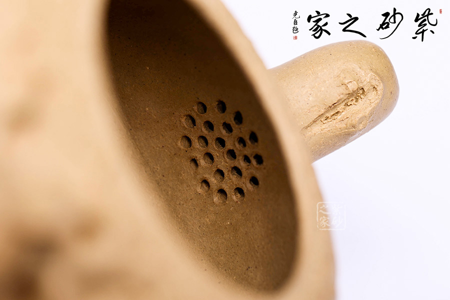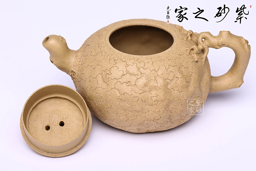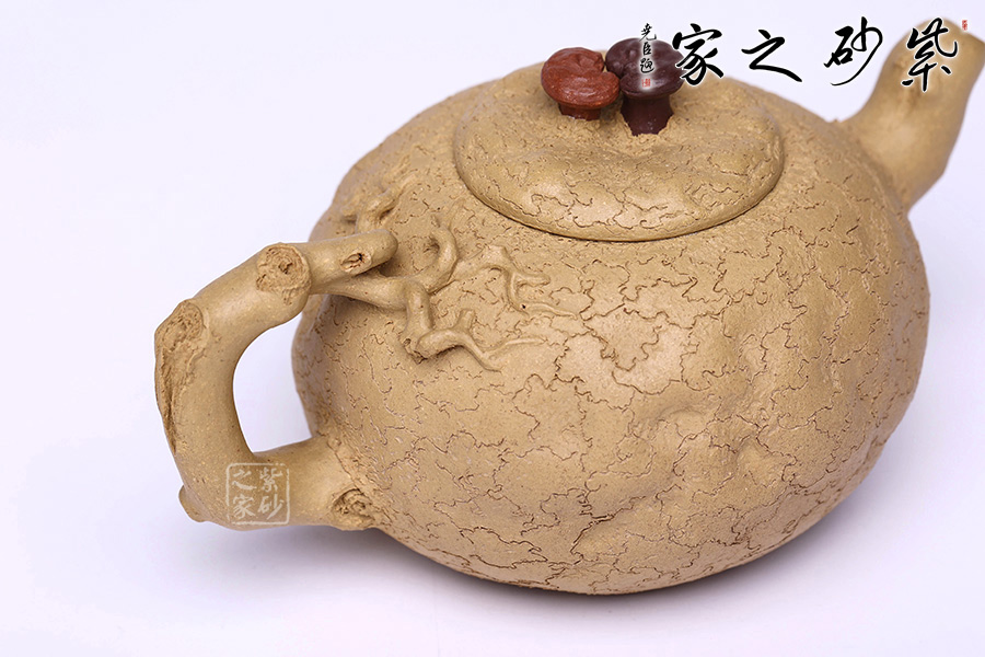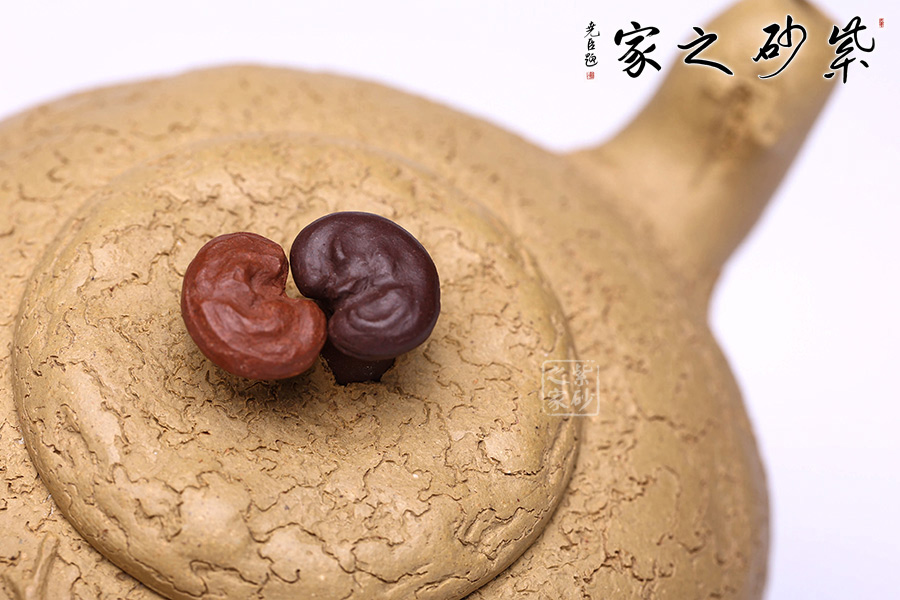 泥性:感甜嫩綿密,質(zhì)堅而溫潤,呈近田黃色調(diào),為江蘇宜興趙莊山系朱泥礦~黃石黃之共生礦,經(jīng)挑揀練製而成,因含鐵量只達6%左右,致陶之后呈“金田黃色”。