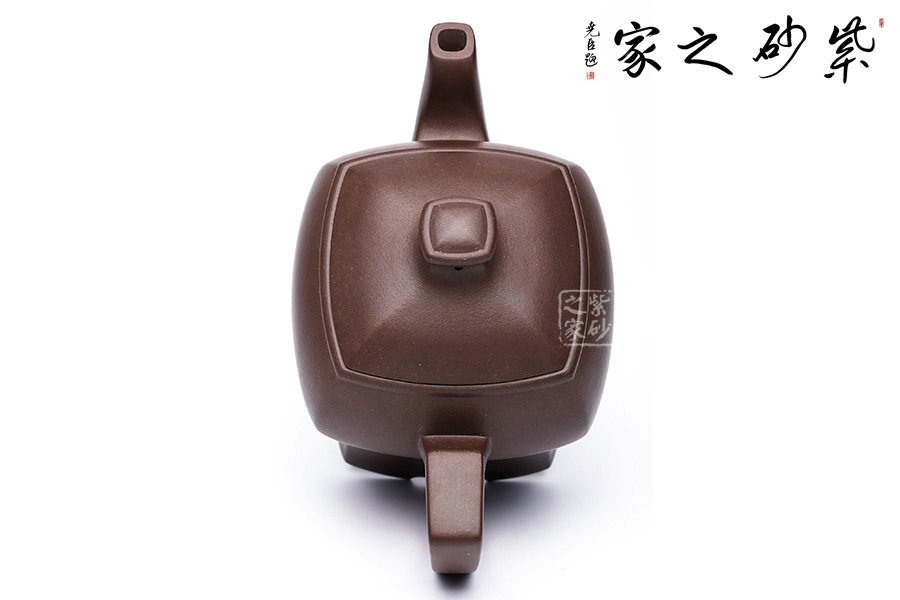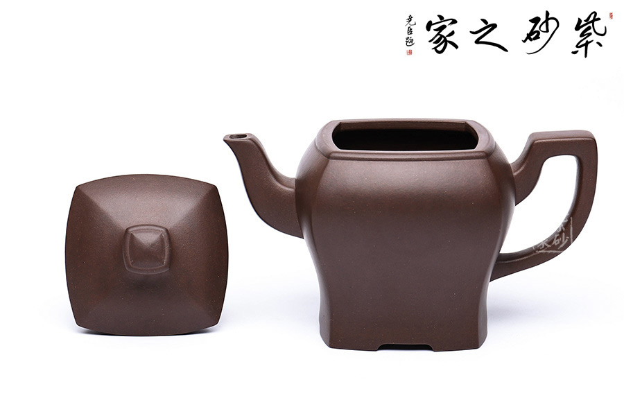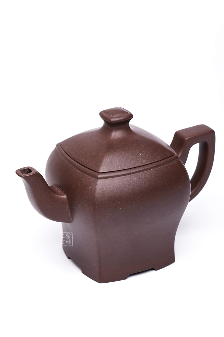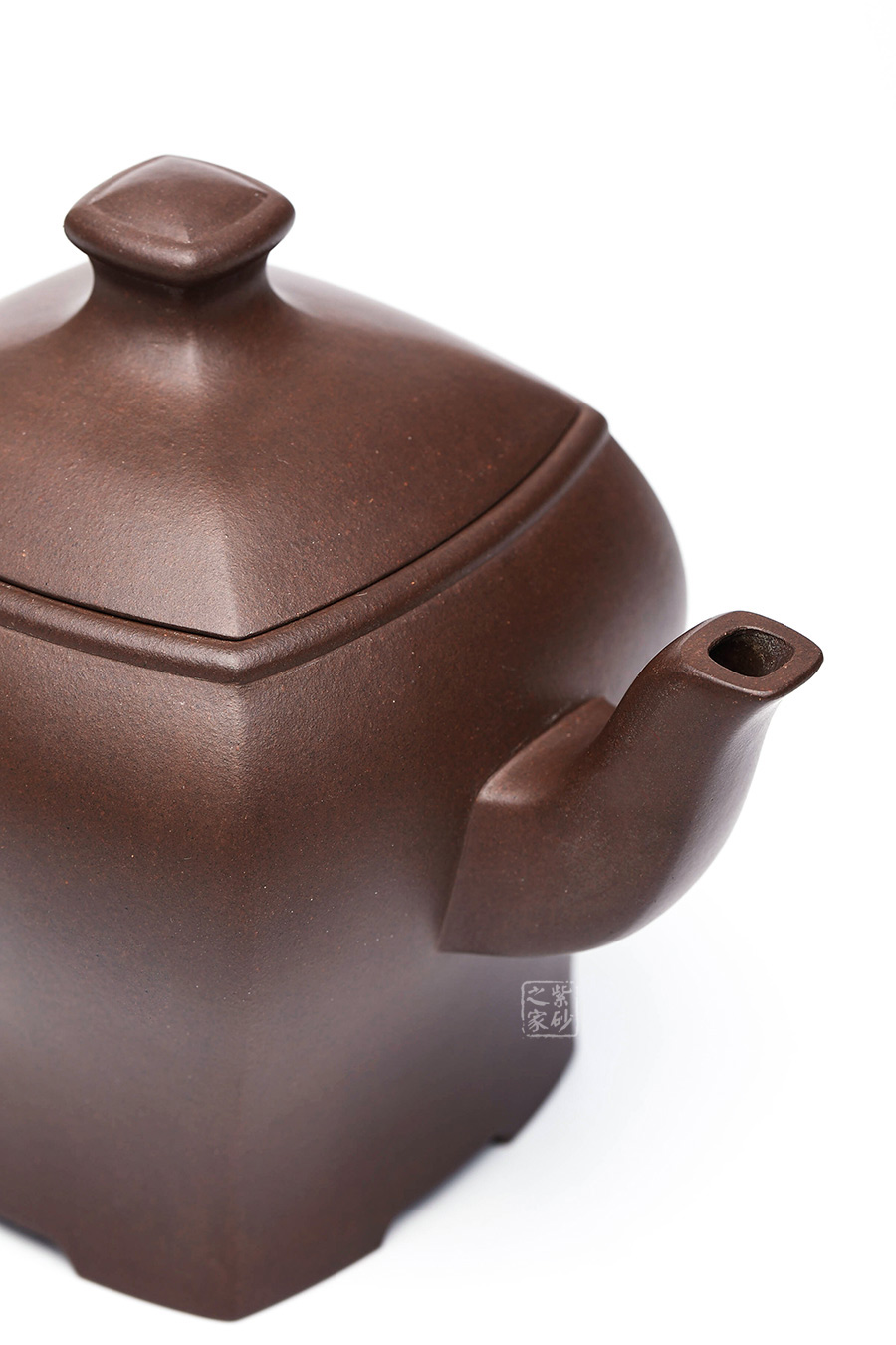 壺柄棱角分明,壺嘴線條流暢,截蓋設計,四方形鈕。