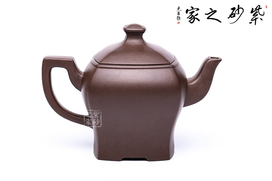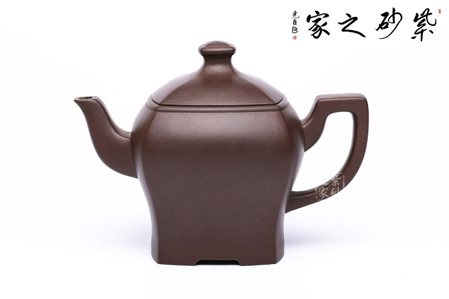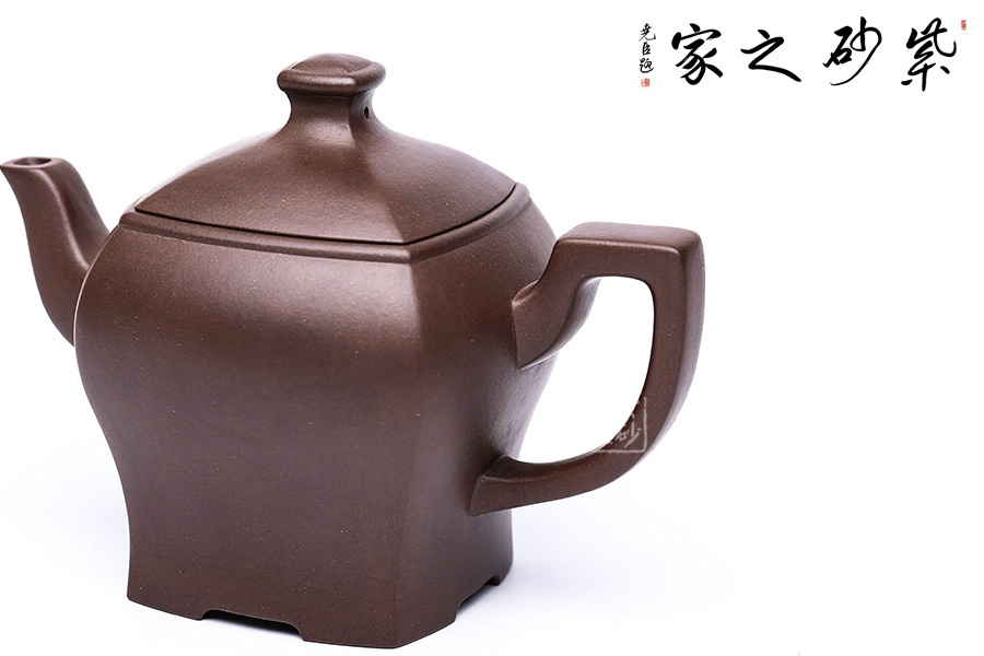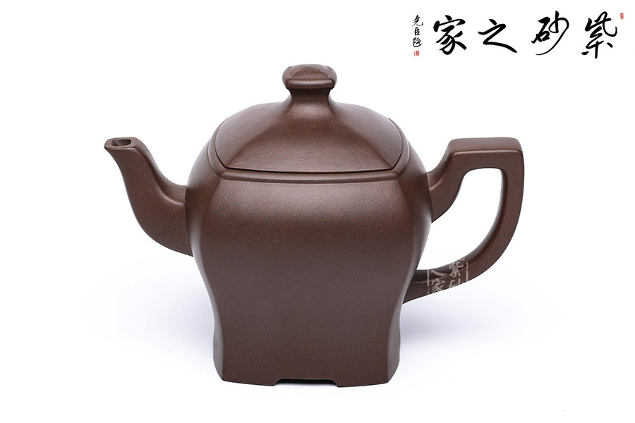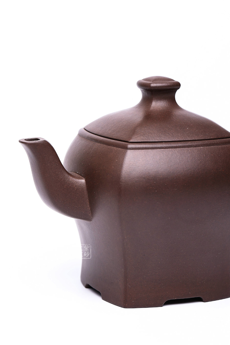 壺柄棱角分明,壺嘴線條流暢,截蓋設計,四方形鈕。