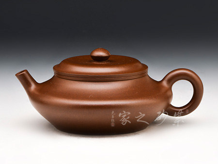 張旭辰老師所做虛扁壺,運(yùn)用朱泥調(diào)砂制作,增強(qiáng)了透氣性,更利于泡茶。