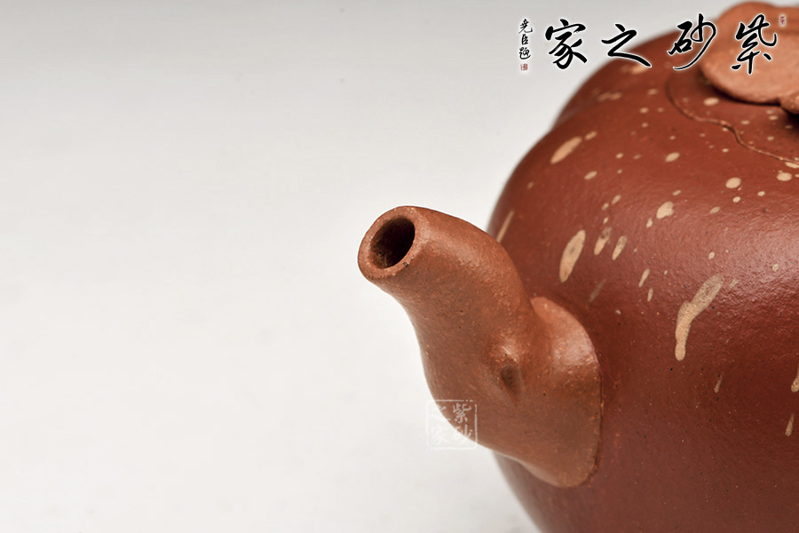 泥性:原礦因含緞泥、紅泥、紫泥等諸多共生礦,陶之后,于深沉之“橙紅色”底上,滿(mǎn)佈五彩斑斕的粗細(xì)、深淺之紅、黃星斑點(diǎn)。