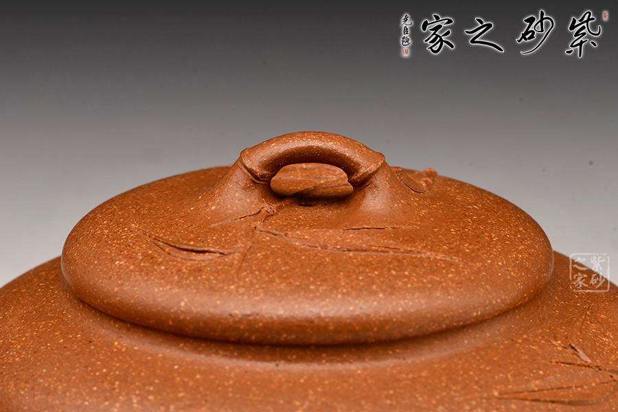 整壺古拙樸茂、內(nèi)涵厚重。壺身扁,大口蓋十分便于茶葉進(jìn)出,是不可多得的創(chuàng)新之品,收藏自用皆宜!