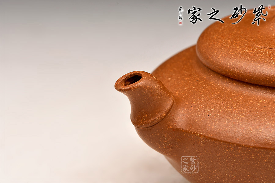泥性:原礦因含緞泥、紅泥、紫泥等諸多共生礦,陶之后,于深沉之“橙紅色”底上,滿佈五彩斑斕的粗細(xì)、深淺之紅、黃星斑點。
