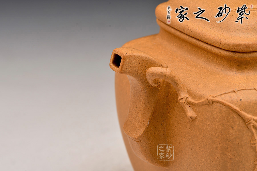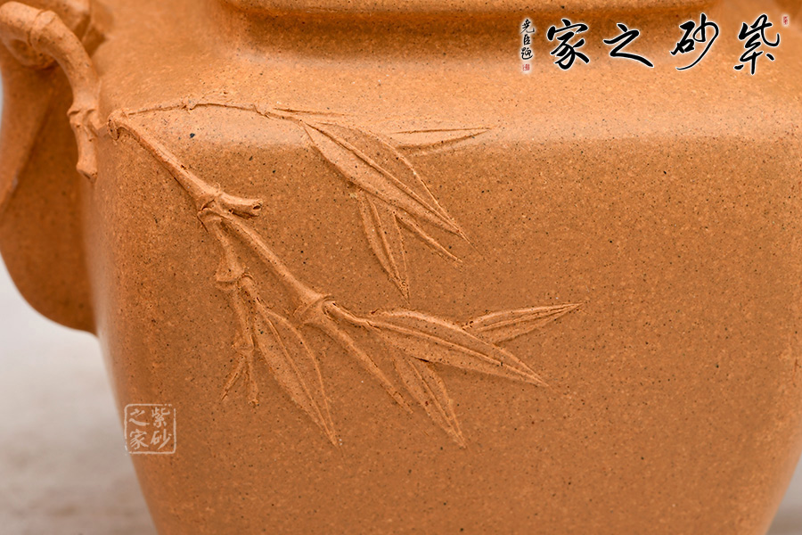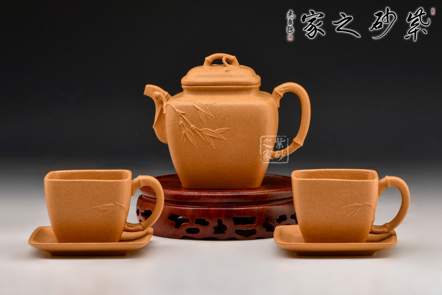 竹報(bào)平安套組,國(guó)家高級(jí)工藝美術(shù)師陳美艷制作,選用宜興黃龍山所產(chǎn)優(yōu)質(zhì)段泥。壺嘴處伸出嫩葉新枝,生機(jī)盎然,體現(xiàn)了竹之韌勁,更凸顯了此壺的內(nèi)涵韻味!壺身四四方方,寓意堂堂正正。