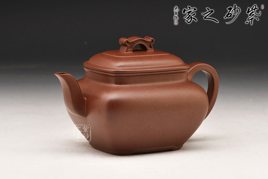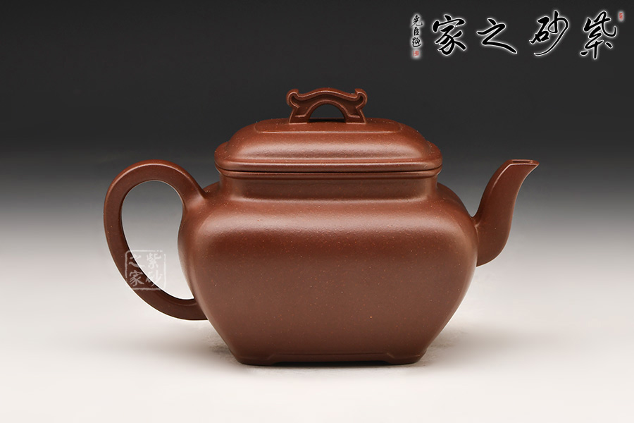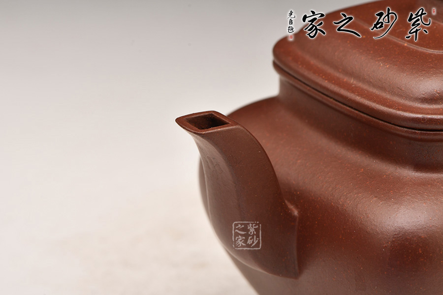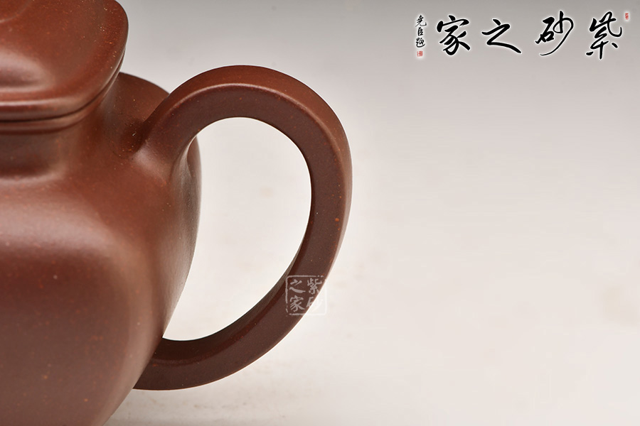 國家高級工藝美術師陳美艷制作,此壺采用宜興黃龍山紫泥底槽青精制而成,質地特純,泥質細膩、成色穩(wěn)重,呈棕色,在近代制壺名家中廣泛使用。