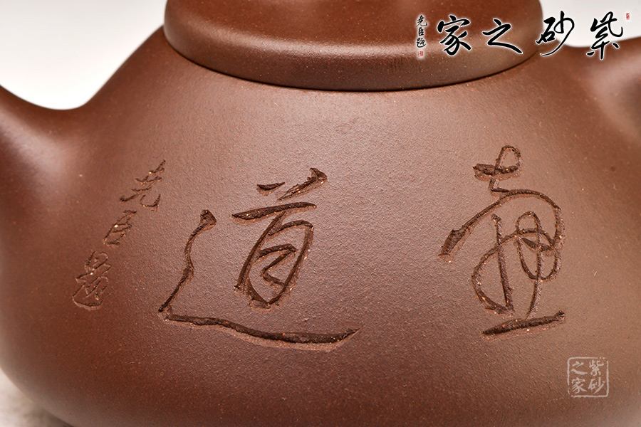 子冶石瓢(呂堯臣題) ,工藝美術(shù)師濮晨制做,大師呂堯臣題字,經(jīng)典的石瓢款型,采用原礦紫泥精制而成。