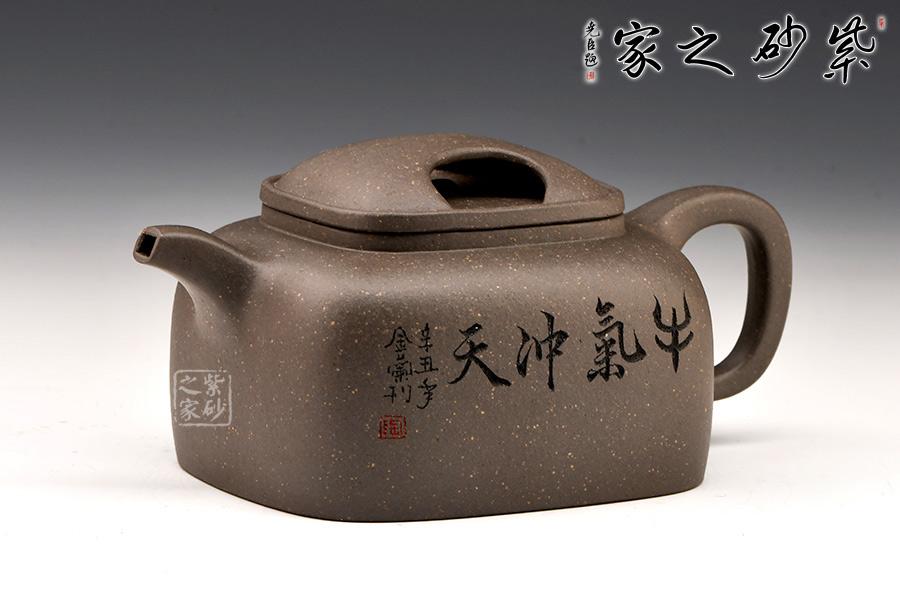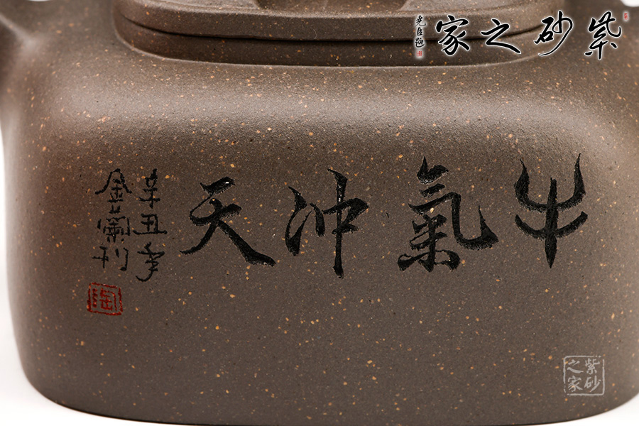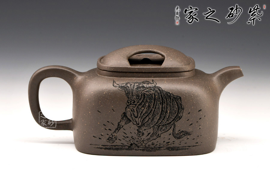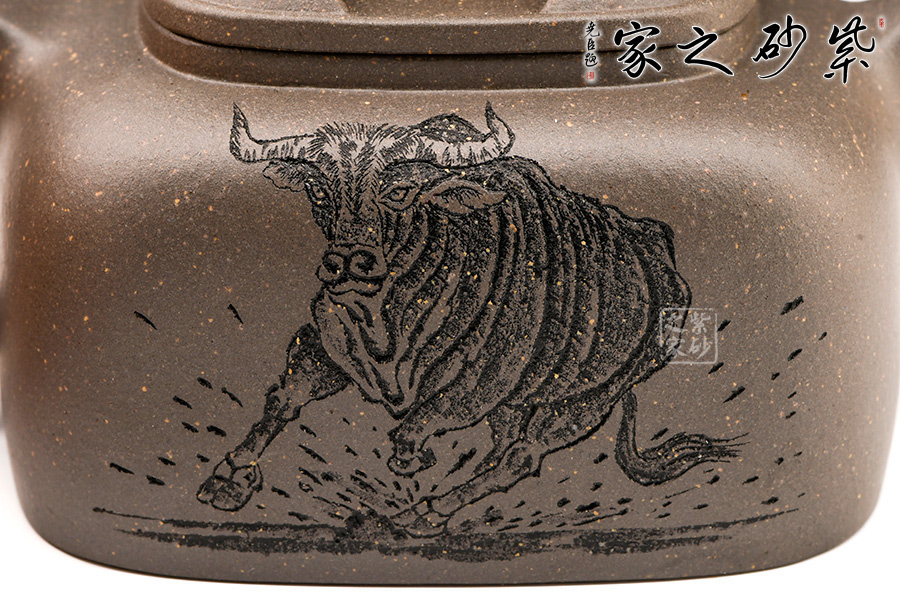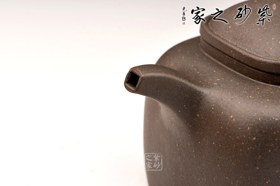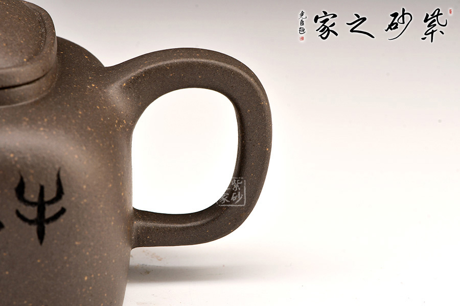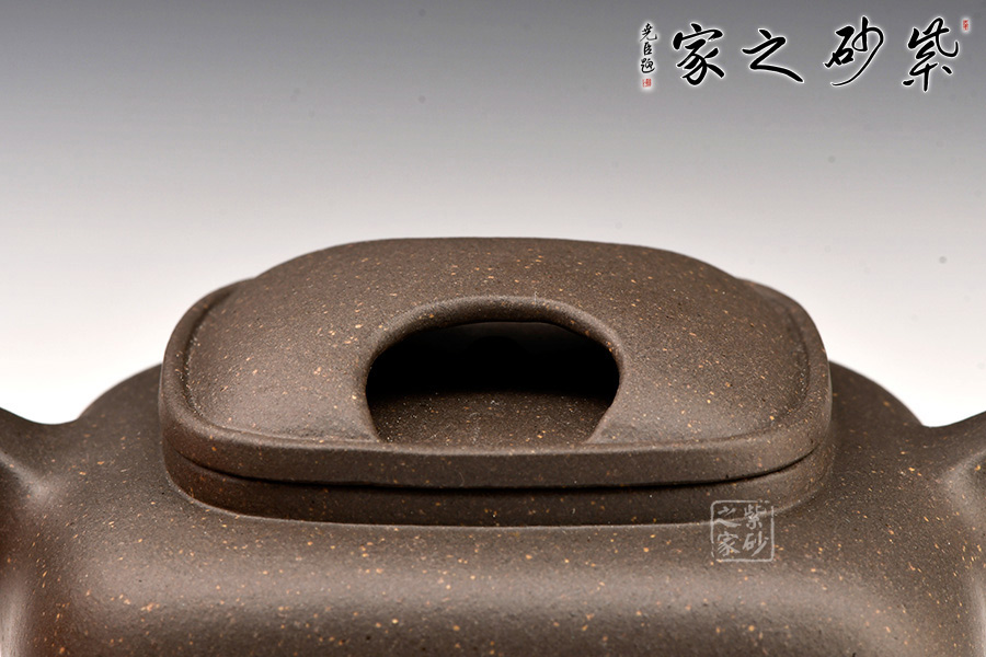 壺蓋做的很精致,壓蓋與壺口緊密結(jié)合,口蓋整體平整光滑,外形流暢;壺鈕制作別出心裁,采用了牛鼻孔式的鏤空結(jié)構(gòu),生動(dòng)與趣味完美結(jié)合。此壺方圓有致,圓中有方,方中帶圓。此壺設(shè)計(jì)大方而到位。莊重的器型,細(xì)膩的材質(zhì),簡(jiǎn)練的線條,塑造了一個(gè)好的形象,這就是紫砂帶給人的魅力。