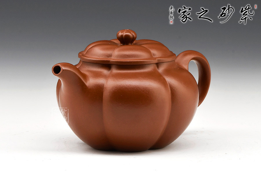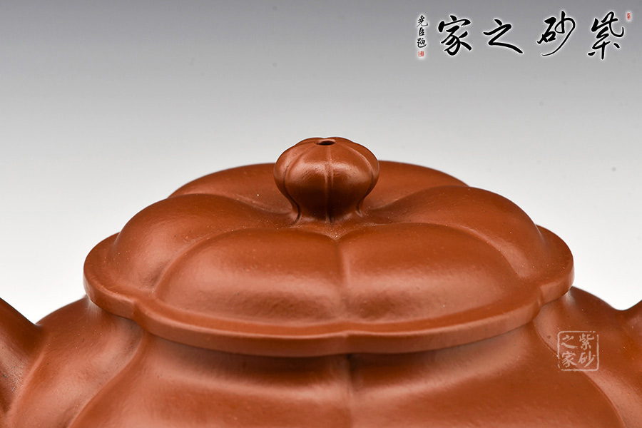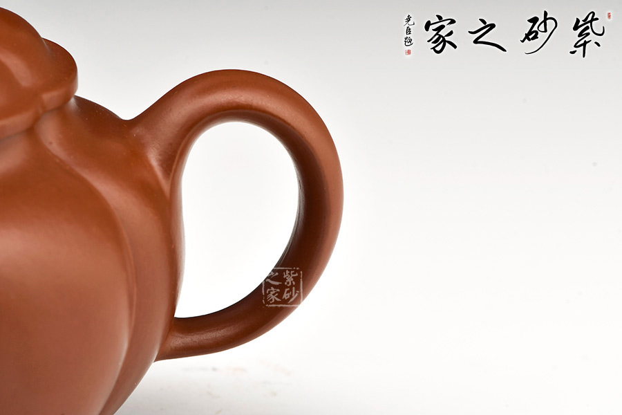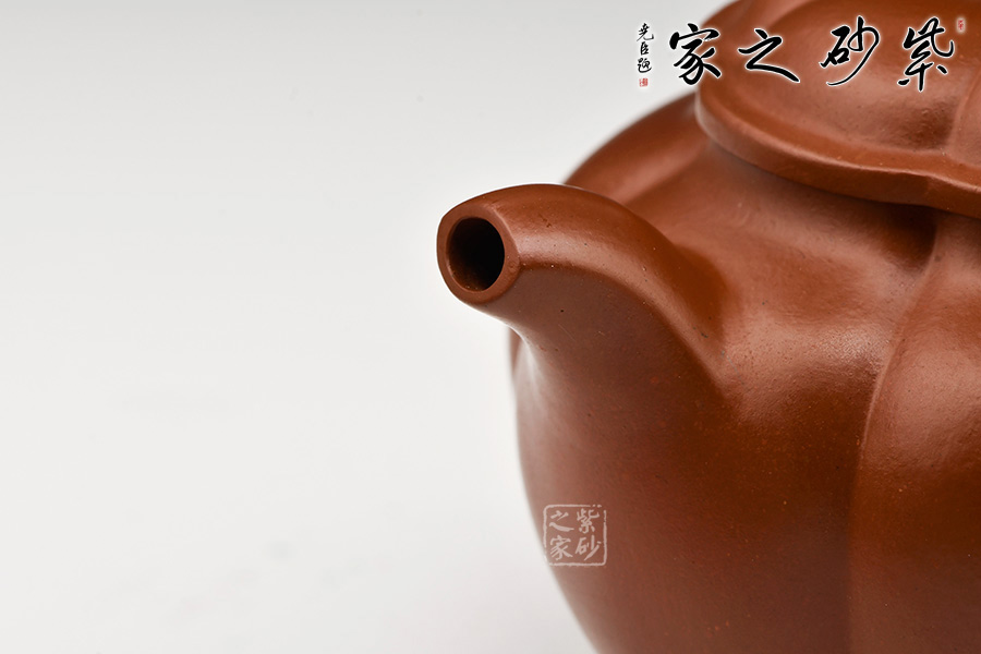 采用極品朱泥大紅袍制作,筋紋輪廓清晰,線條鮮明有力,分割勻稱,對稱工整。