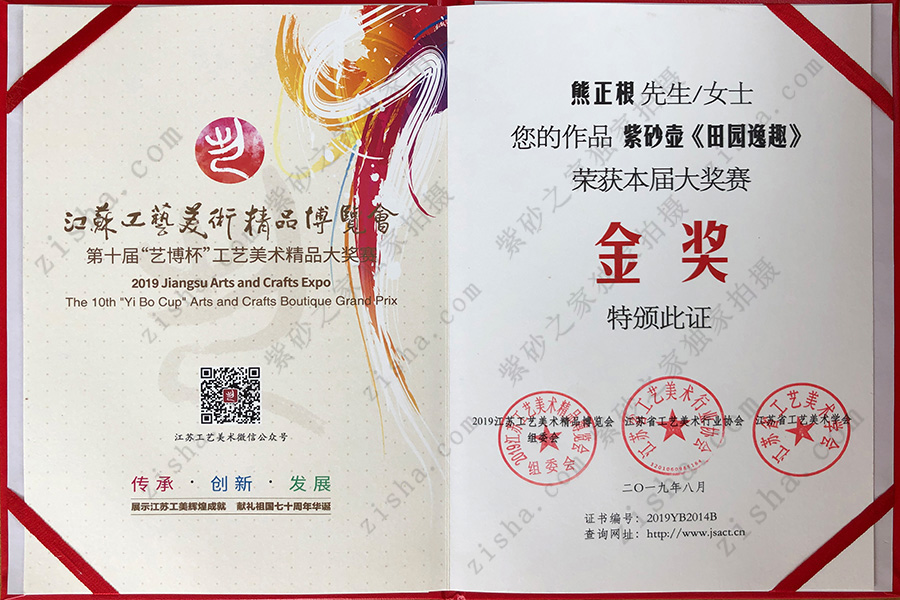 覽中心主場館,受邀把有著東方紫玉、陶中瑰寶的紫砂藝術(shù)現(xiàn)場全手工制作紫砂壺成型、展示傳統(tǒng)制壺技藝給各級領(lǐng)導(dǎo)及觀眾們,并由江蘇電視臺(公共新聞頻道)及各大媒體同時播出;2020年無錫市“大阿?!北に嚸佬g(shù)鄉(xiāng)土技藝優(yōu)秀作品展?評審主任專家;2019/2020年隨江蘇省文化代表團受邀參加澳門國際文化藝術(shù)交流;在各類藝術(shù)賽事中:連續(xù)多年多屆獲江蘇省工藝美術(shù)行業(yè)賽事“藝博杯”金獎;個人作品多次獲國級、省級獎項;近年如:中國工美“百花杯”金、銀、銅等獎項;江蘇省工美“藝博杯”獲:多項金、銀、銅等獎項;廣東省工美“原創(chuàng)設(shè)計”榮獲2金獎項;在江蘇省第五屆“紫金獎”大賽中獲優(yōu)秀獎并作為紫金獎巡展作品..多篇論文在國級、省級(網(wǎng)絡(luò))等刊物上發(fā)表并擁有多項個人外觀設(shè)計專利;多件作品被各博物館收藏等;個人先后被中央電視臺、中國經(jīng)濟網(wǎng)、新浪網(wǎng)、中國藝術(shù)品網(wǎng)、國家工藝美術(shù)產(chǎn)業(yè)公共服務(wù)平臺、中國工美、中國民協(xié)、江蘇工美、江蘇藝博網(wǎng)、江蘇電視臺、江蘇職工網(wǎng)、江蘇工人報、江蘇陶瓷、網(wǎng)絡(luò)媒體等多家采訪報道;百度百科、搜狗百科、頭條百科、匠人百科等可查詢個人詳情;