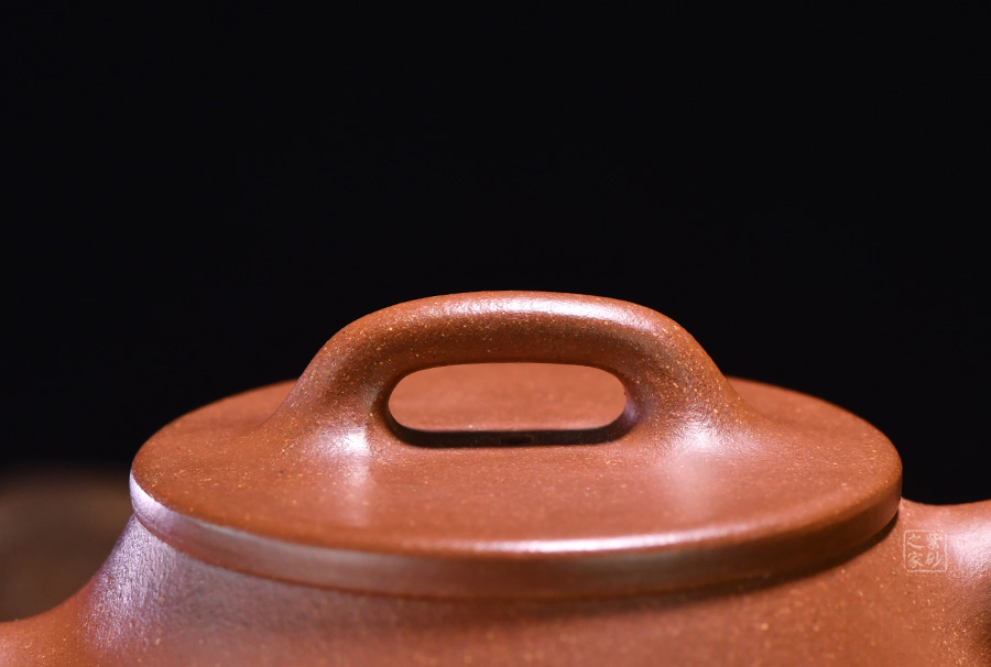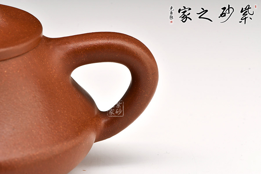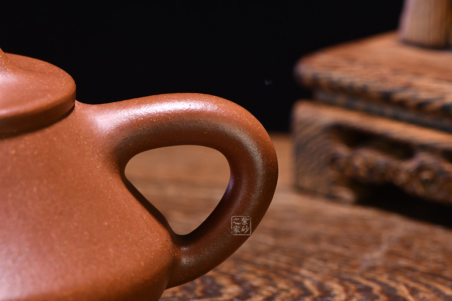 整個壺比例勻稱,精巧可愛。無論是橋鈕、壓蓋,還是直流、三角把,抑或是人字形壺身,布局精巧,恰到好處。