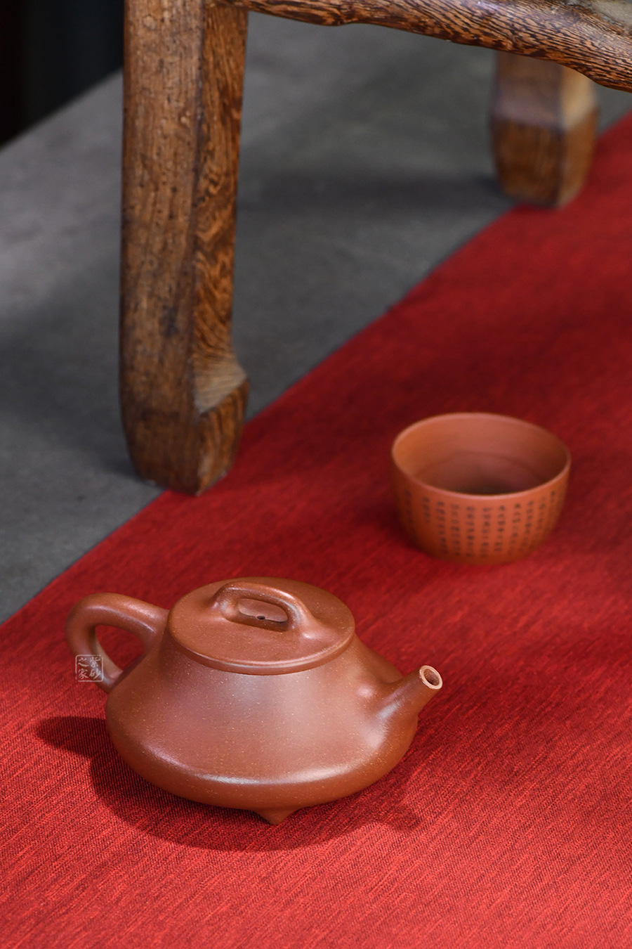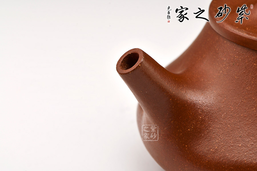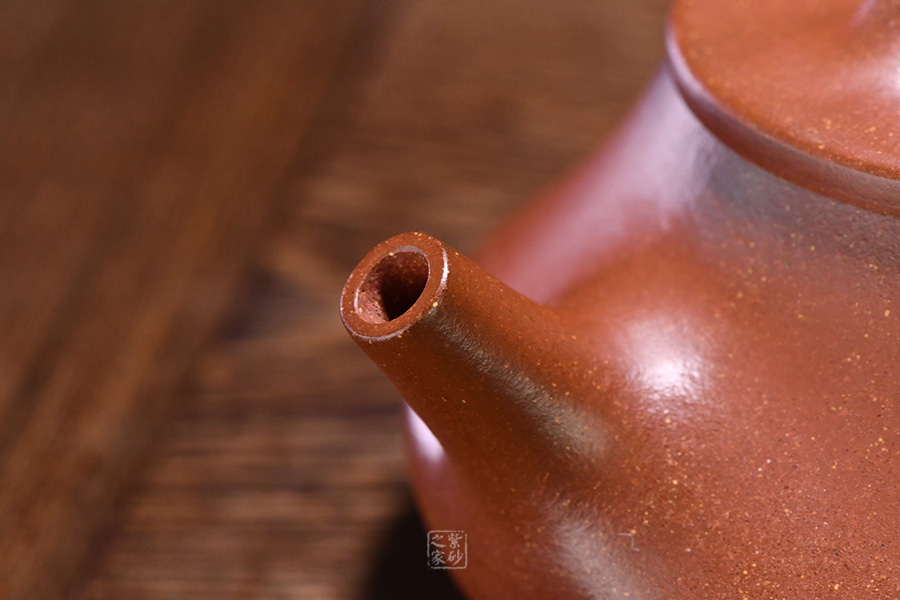 泥性:原礦因含緞泥、紅泥、紫泥等諸多共生礦,陶之后,于深沉之“橙紅色”底上,滿佈五彩斑斕的粗細、深淺之紅、黃星斑點。