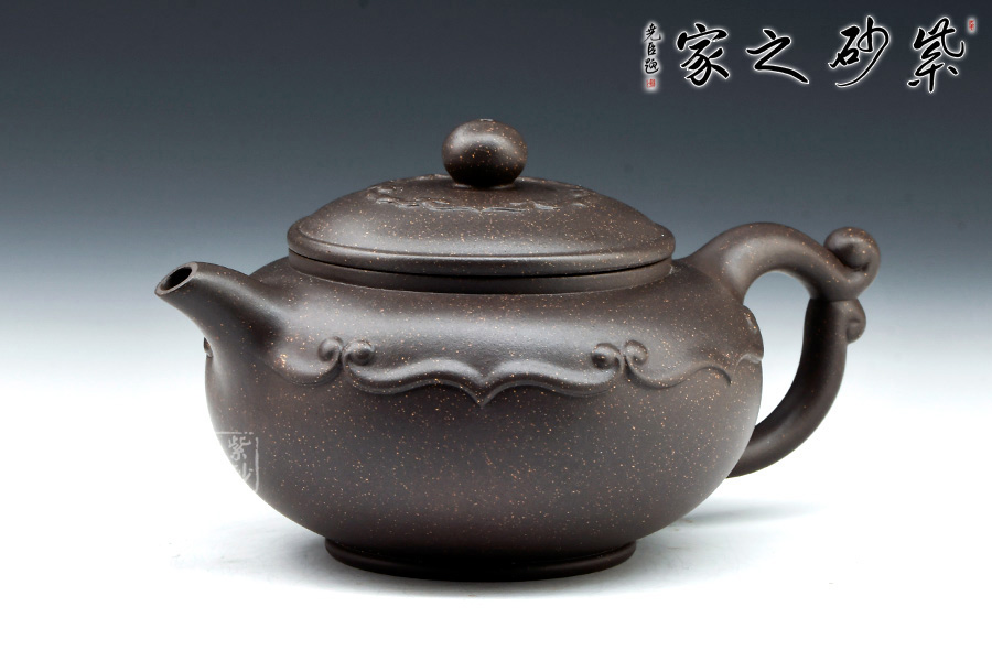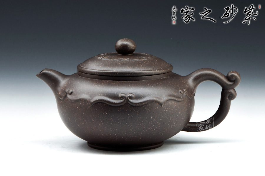 厚德載物 ,國(guó)家級(jí)高級(jí)工藝美術(shù)師熊正根作品。此壺壺流自然,壺把勻勢(shì)而起,且與壺身如意貫氣,壺鈕為如意形橋梁式,平緩舒展合體。