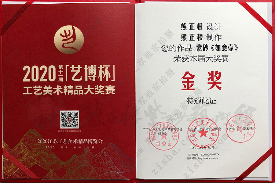 ●《如意壺》2020第十一屆“藝博杯”江蘇省工藝美術(shù)精品大賽獎“金獎”