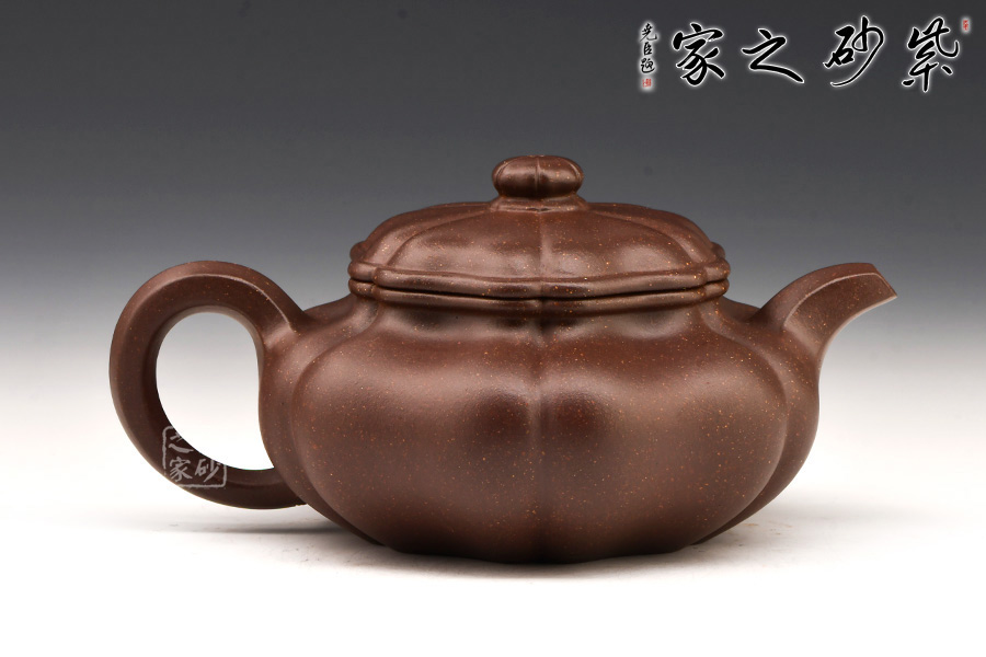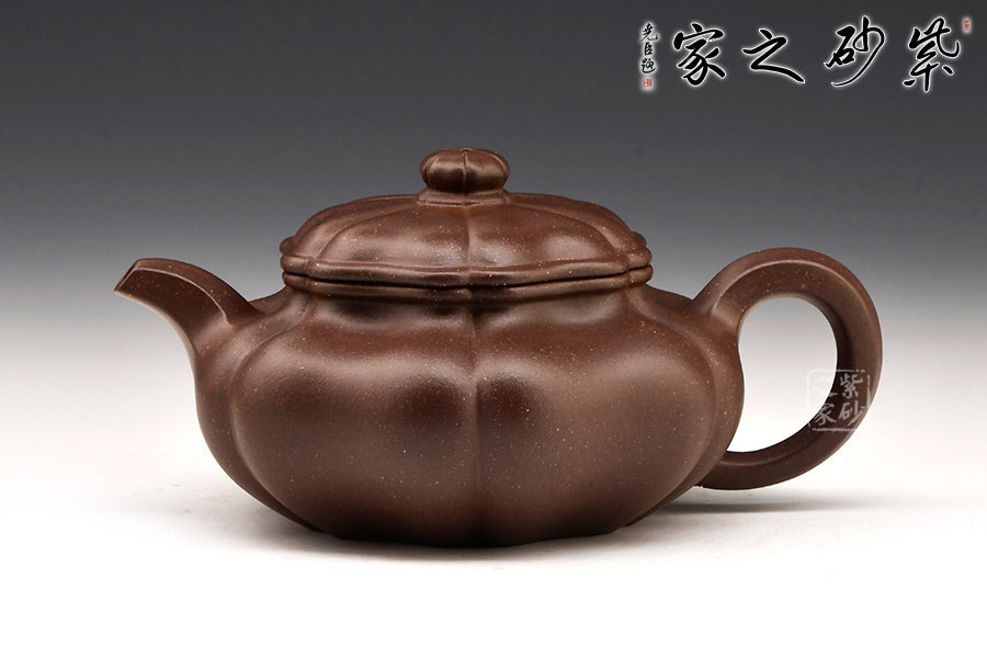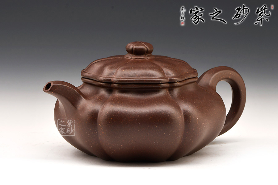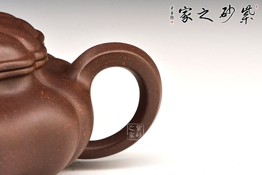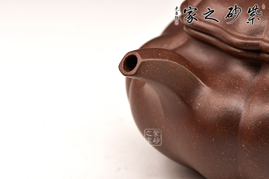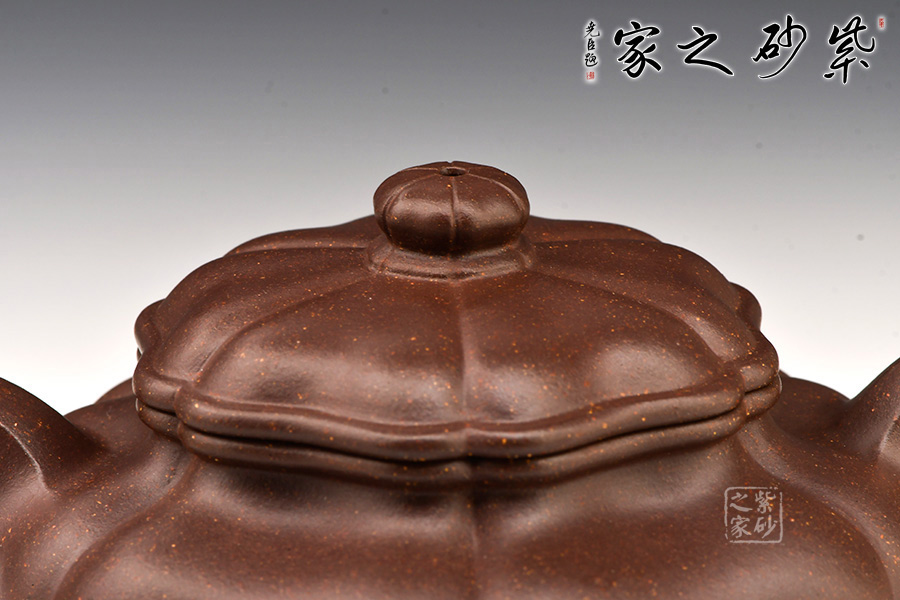 談劍鋒老師所制葵仿古壺,以優(yōu)等紫泥紫羅蘭泥為料,以六菱葵瓣為圖案。整壺筋紋起線,如一朵盛開的葵花,熱烈而奔放。壺鈕似嫩葉托起的花苞,羞澀待放,生命的活力與勃勃生機展露無遺。