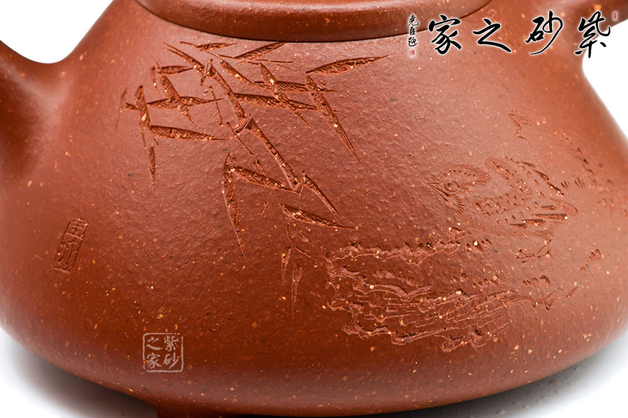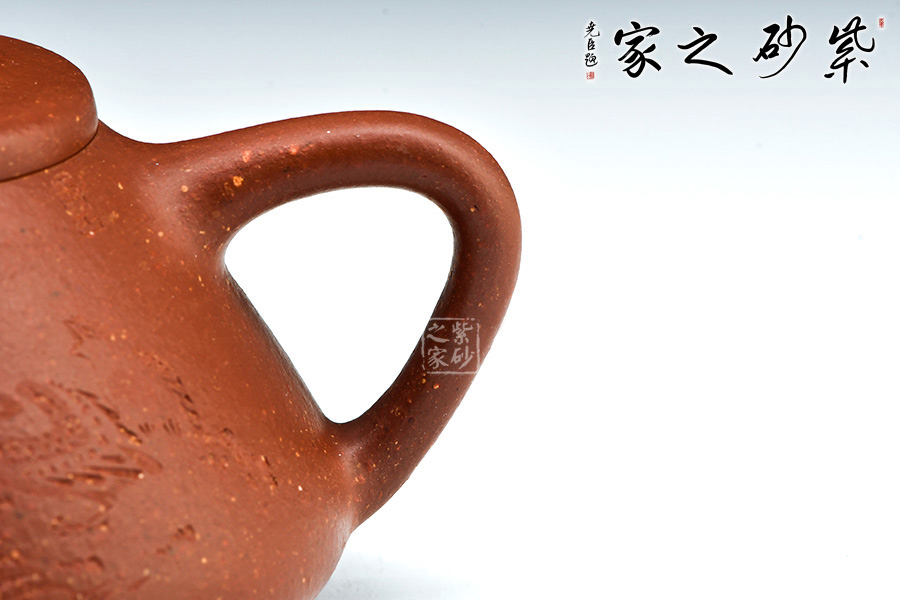 泥性:原礦因含緞泥、紅泥、紫泥等諸多共生礦,陶之后,于深沉之“橙紅色”底上,滿佈五彩斑斕的粗細(xì)、深淺之紅、黃星斑點(diǎn)。
