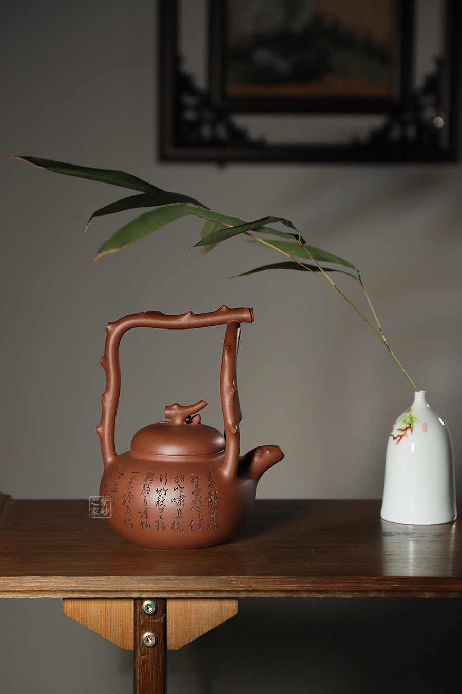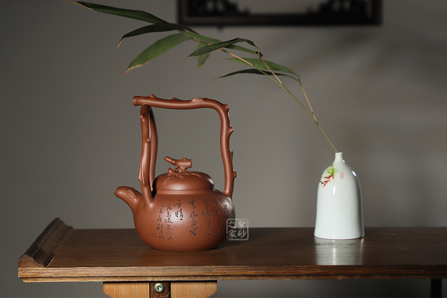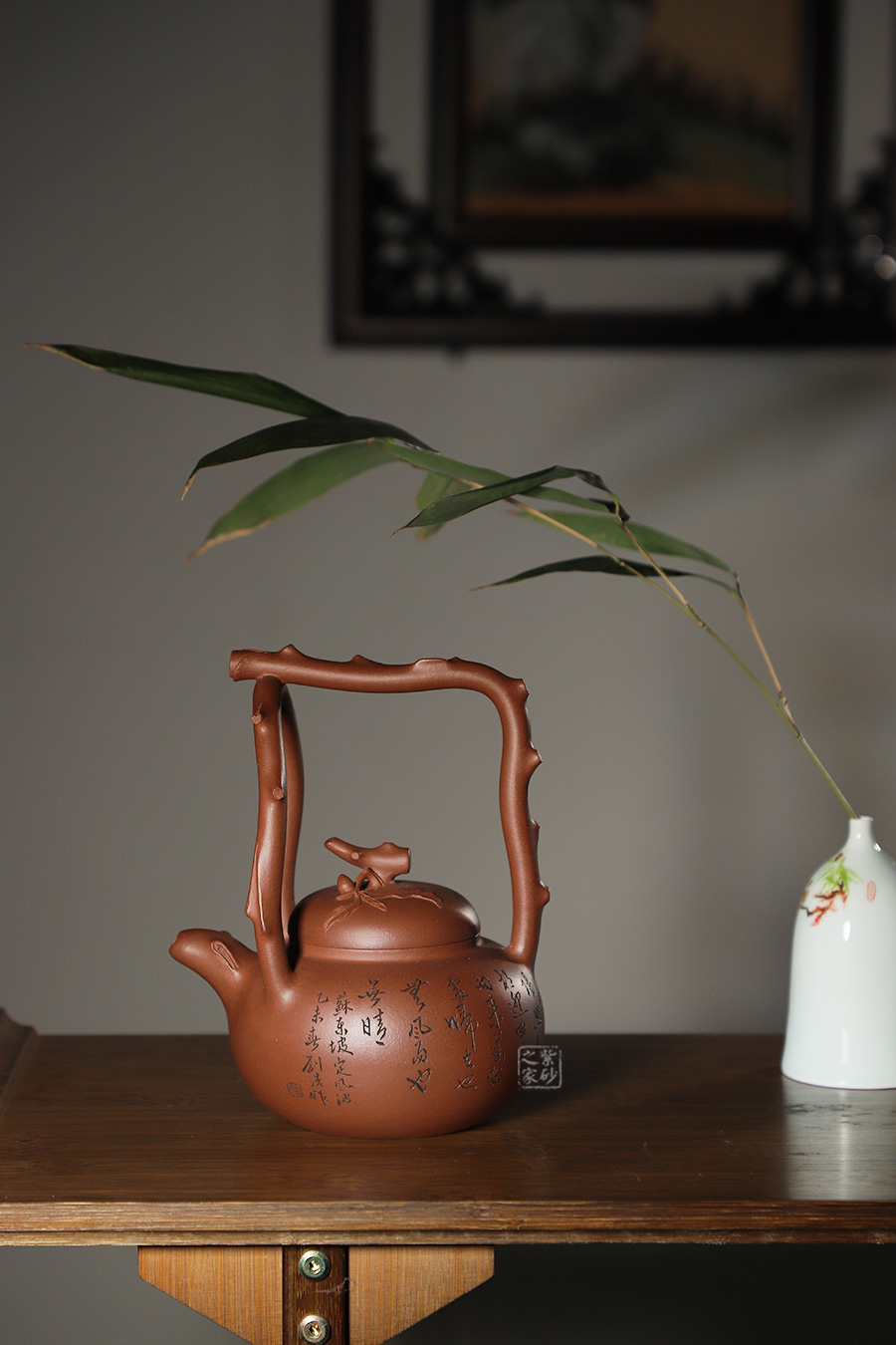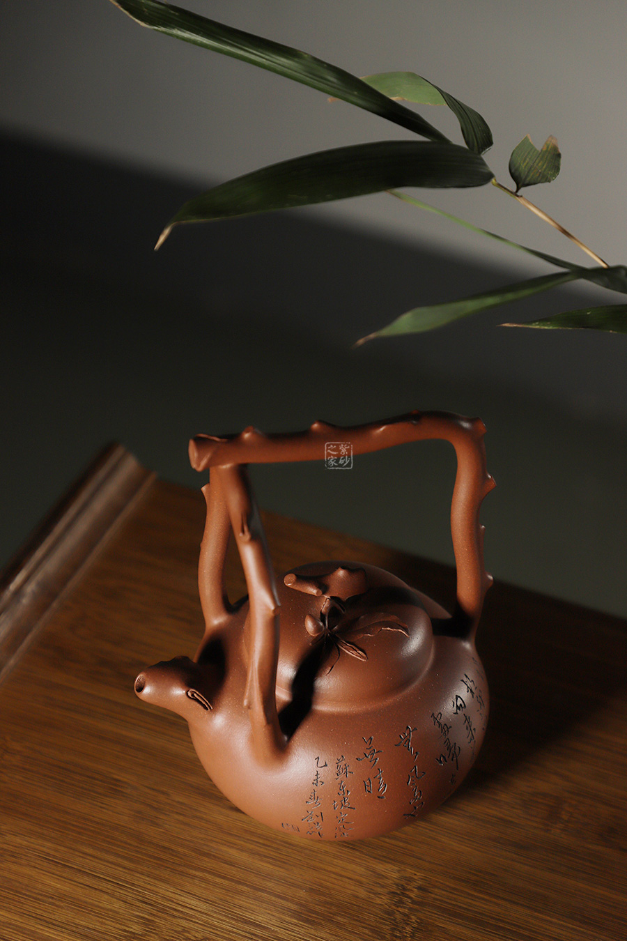 東坡提梁,東坡提梁壺制工嚴(yán)謹(jǐn),圓純精致,心胸神韻,似乎與民間故事傳說中的東坡提梁壺相得益彰,情趣意合。