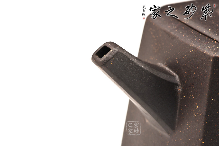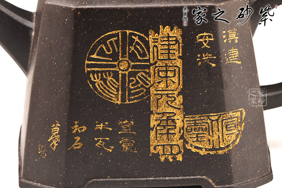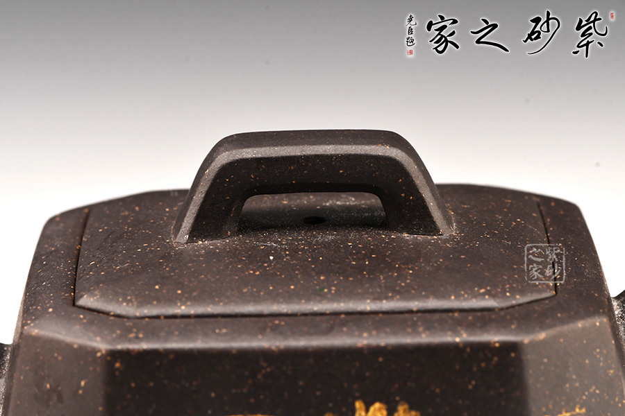 身體呈方壺之型,各部比例協(xié)調(diào)。線面挺括,輪廓分明。將直線與弧線巧妙結(jié)合,使壺方中帶圓,優(yōu)雅而悅目的造型給人古拙之感。