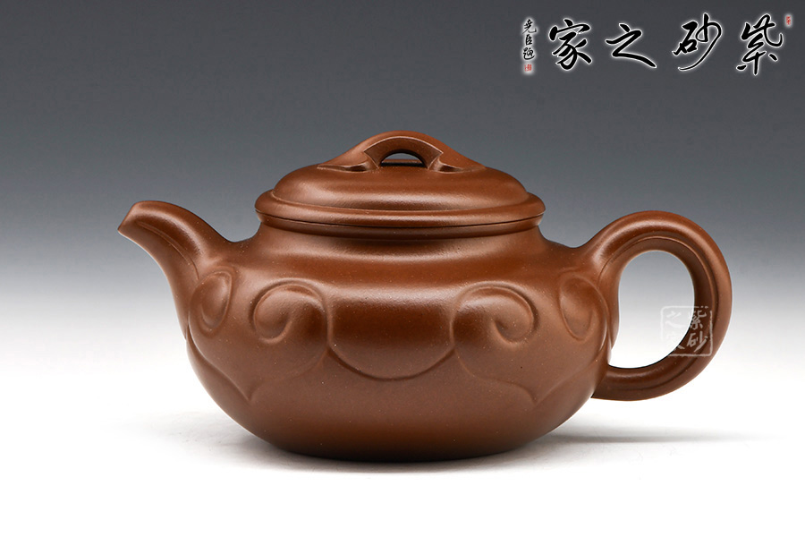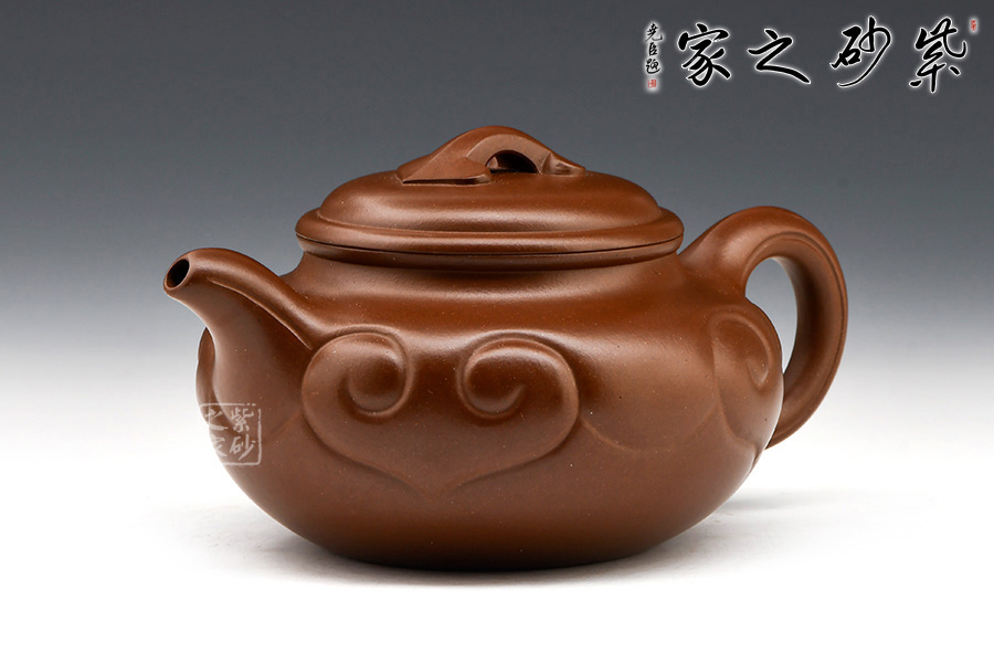 仿古如意是款經(jīng)典壺型。作品在仿古造型之上加以如意紋飾,線條起承轉(zhuǎn)合間流暢合理,呈現(xiàn)一股行云流水的爽利感。