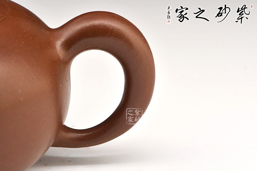 一彎流胥出,渾厚飽滿,嘴頭明顯收縮,形成嬌憨可愛的氣韻;與壺嘴相對(duì)應(yīng),壺柄上下細(xì)膩,中間渾圓粗壯,不僅比例均衡,而且拿捏有力,與280cc的容量相匹配,實(shí)用性很好。
