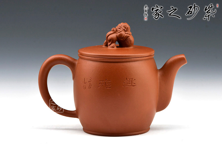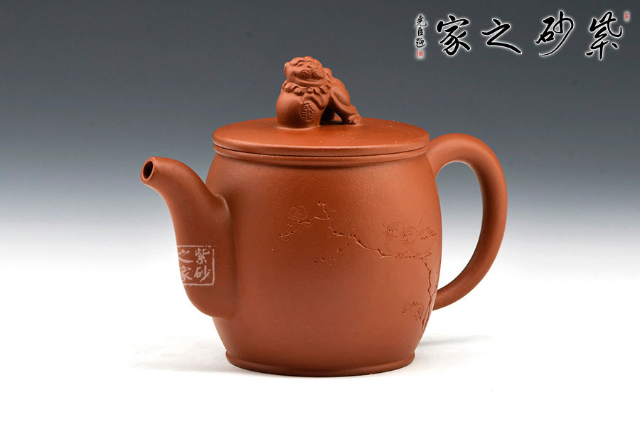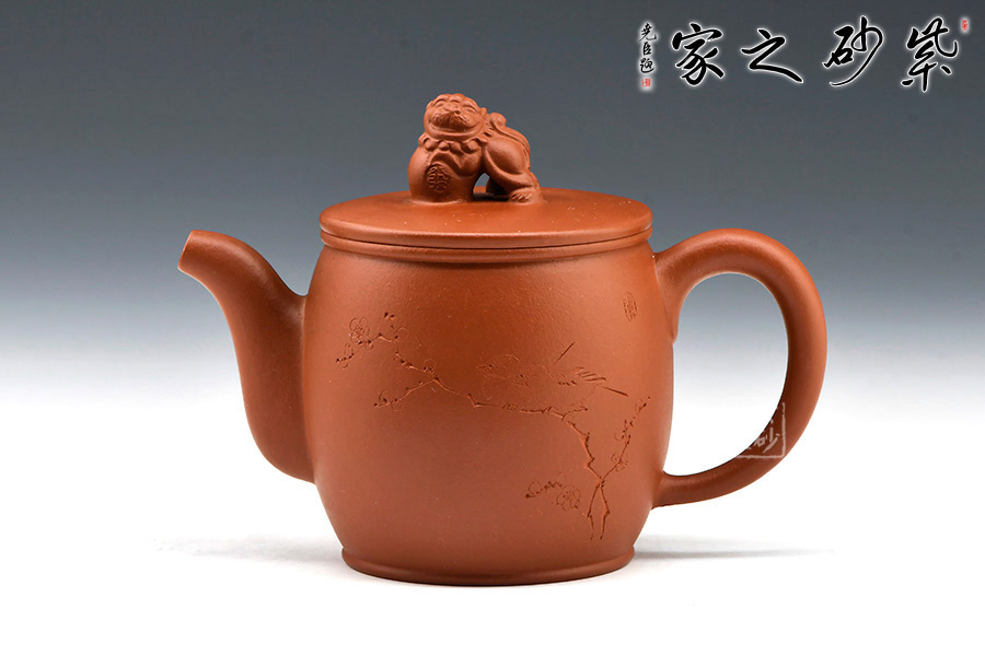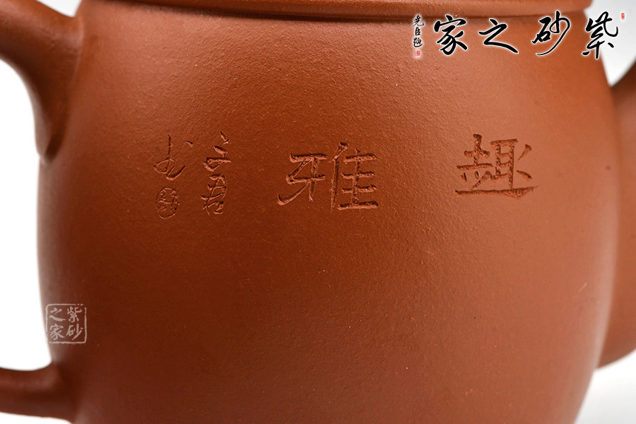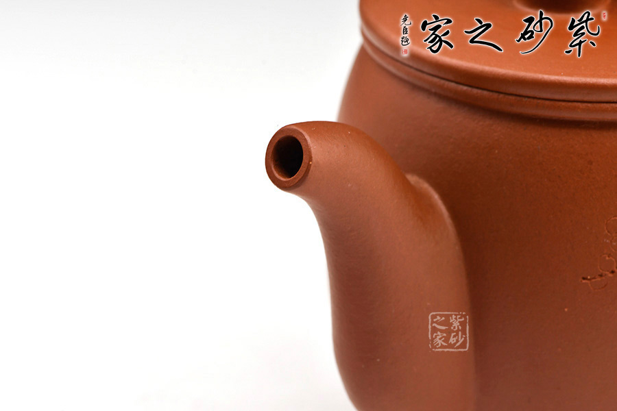 壺身較高,裝飾花鳥點(diǎn)綴,整個(gè)壺身加上底與蓋的高度,顯得十分尊貴大氣,耳形壺把也相應(yīng)更端正一些,壺嘴三彎,明接精湛,憨厚有趣。