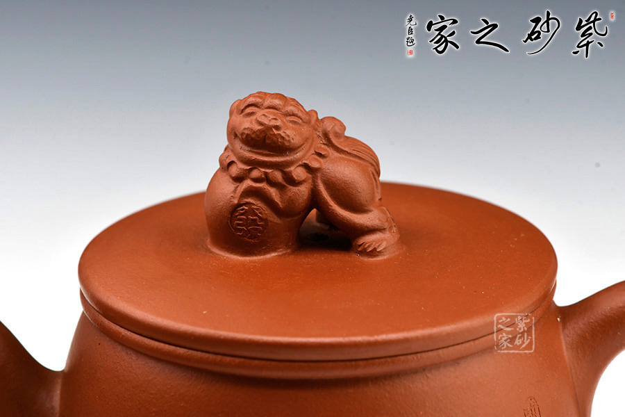 傳統(tǒng)的福鼓壺型簡(jiǎn)約古拙,壺身上極力體現(xiàn)“扁”與“圓”,大口蓋也是突出壺體的渾厚,壺身上下像是一樣的,加底設(shè)計(jì)及平蓋夾著鼓形的壺身,扁圓的壺鈕也與壺身的造型相契合。