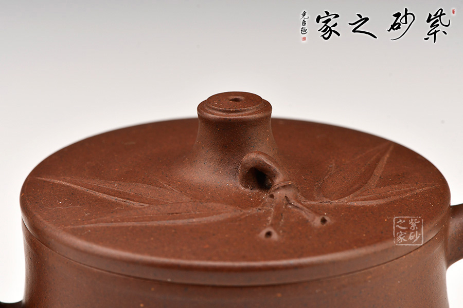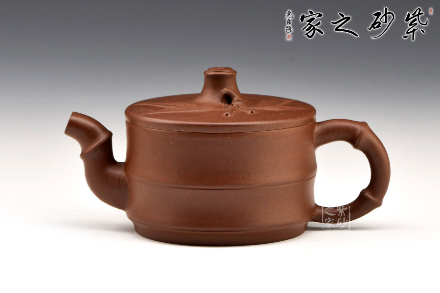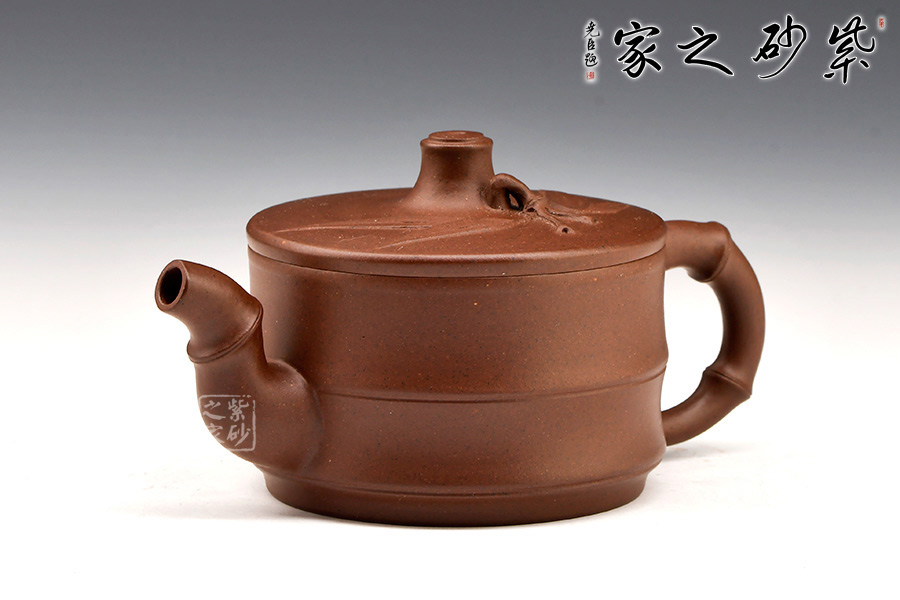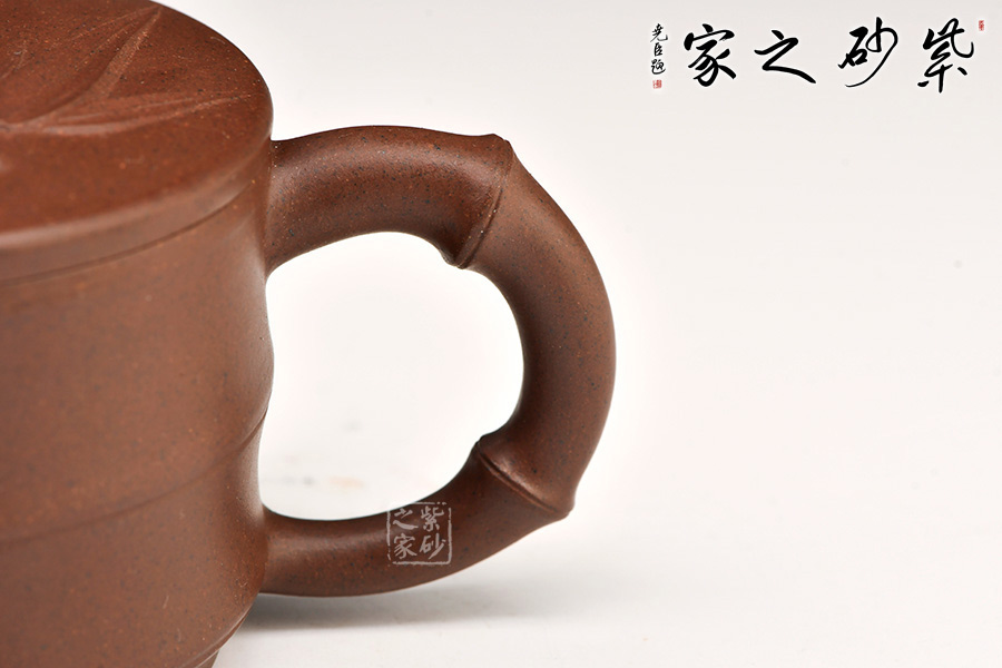 “竹寓于壺,更顯清雅”。竹韻壺壺身為竹段,飽滿有節(jié),細致入微。作者力盡在適度的夸張和變形中,做到清新自然,彎曲有致的竹枝作壺流和壺把恰到好處,渾然天成。此壺做到既展現(xiàn)了竹的剛勁氣節(jié),又統(tǒng)一了紫砂壺需要的美觀、實用好用,值得推薦!