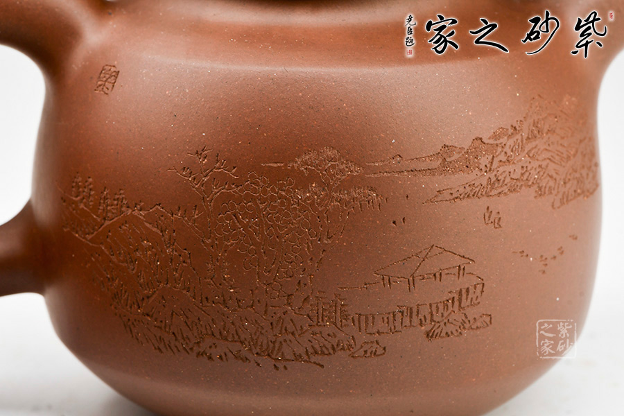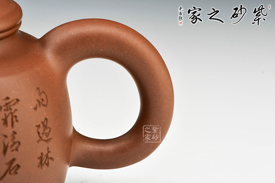 光貨離不開裝飾。俗話說“壺隨字貴,字隨壺傳”:光壺不刻字,就是一把光壺;壺上面刻了大師、名人的字,一把壺的含金量就高了,收藏價值就更高,升值潛力就更大。王福君與中國工藝美術(shù)大師譚泉海合作最多,其次是徐安碧、鮑志強、毛國強(均為中國工藝美術(shù)大師、中國陶瓷藝術(shù)大師)。