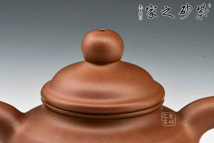 此壺大方高雅,是玩壺品茗的佳選。整器協(xié)調(diào)統(tǒng)一,中間部分平滑洗練,頸部和底足相互對應(yīng),更顯氣質(zhì)優(yōu)雅。子母線壓蓋設(shè)計,對接工整。鼓蓋簡潔流暢,搭配珠型鈕。壺把和壺嘴的造型都很傳統(tǒng),壺把環(huán)形,渾圓厚重,壺嘴彎流,線條簡單。整個壺型厚重而不苦悶,優(yōu)雅又不輕佻。