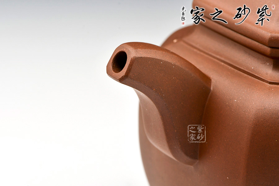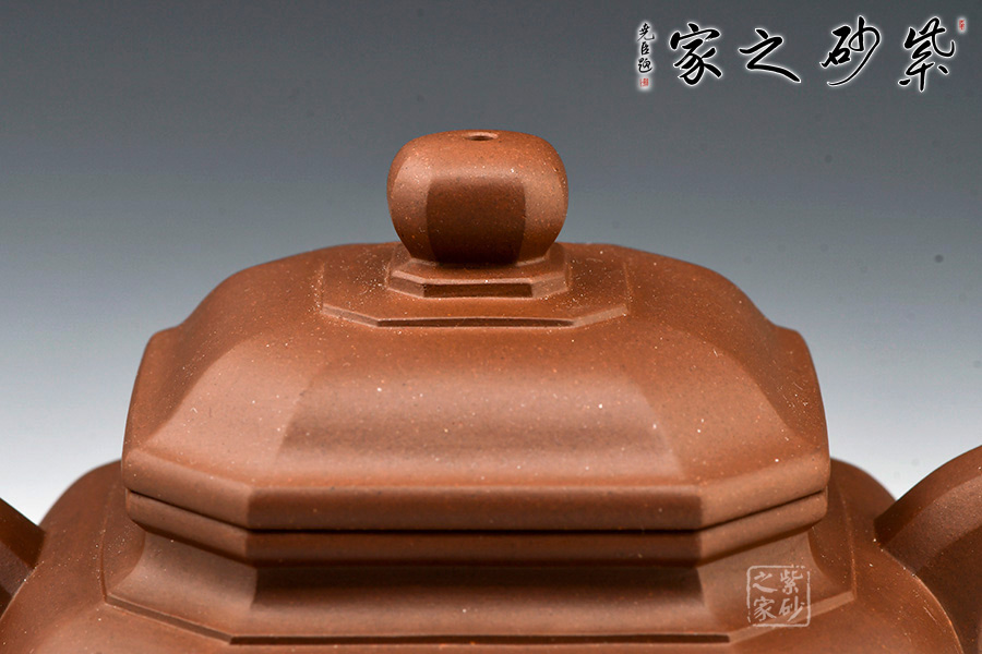 這款作品方正圓潤,美觀動(dòng)人,神思無限。壺身的八方型中融入圓形,圓滑里有工整自然。子母線的圓潤非常動(dòng)人,平整細(xì)膩,足見工藝高超。